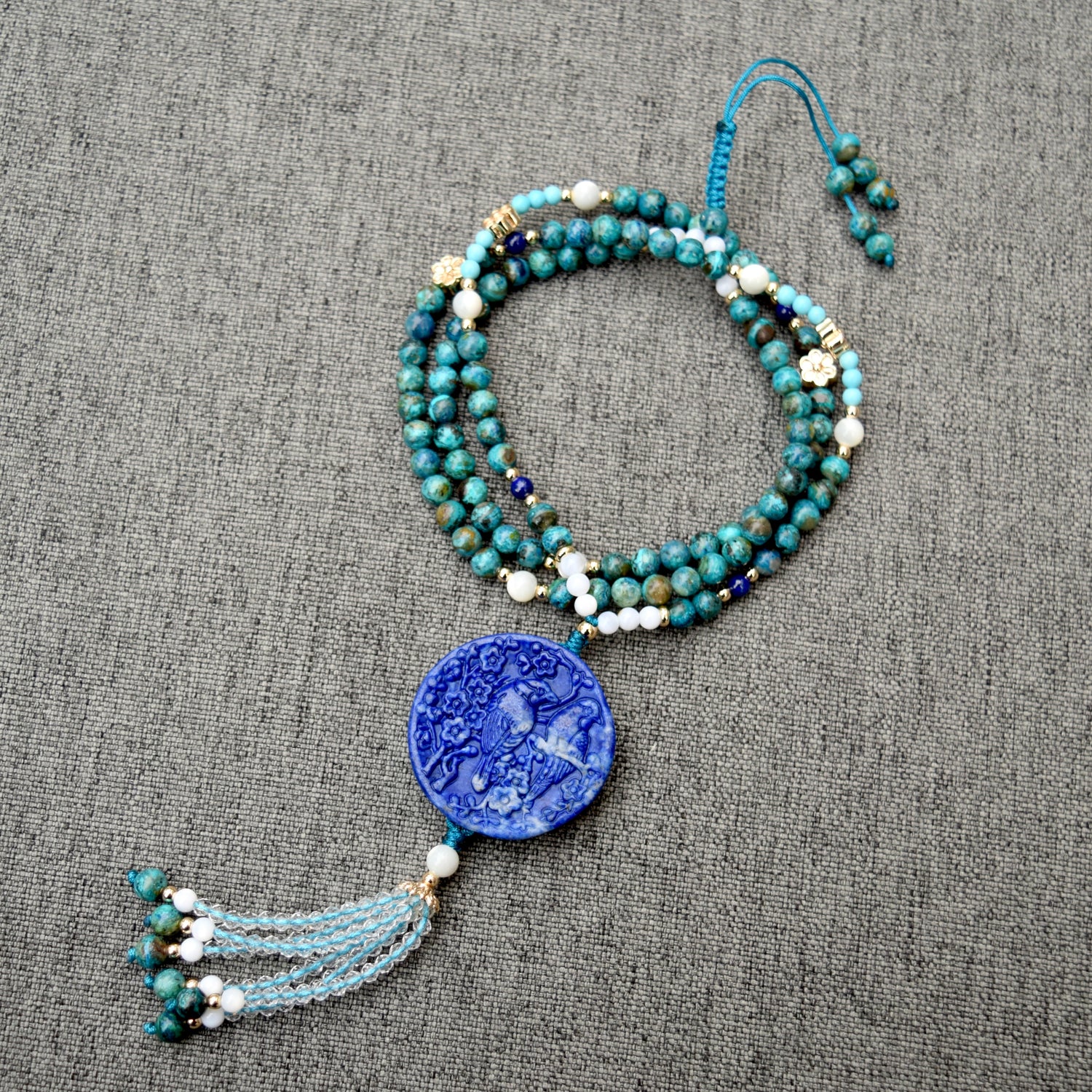 Lapis Magpies Plum Blossom Necklace - African Turquoise