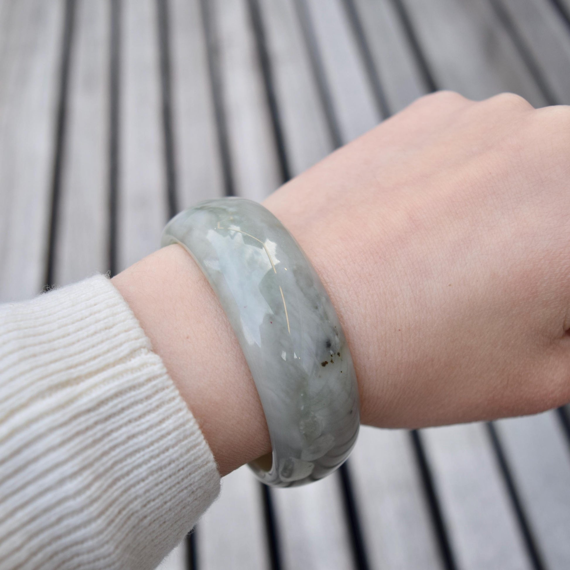 This bangle is made of natural jade. Wearing jade jewelry for a long time will be beneficial to your body and make jade oily and bright.