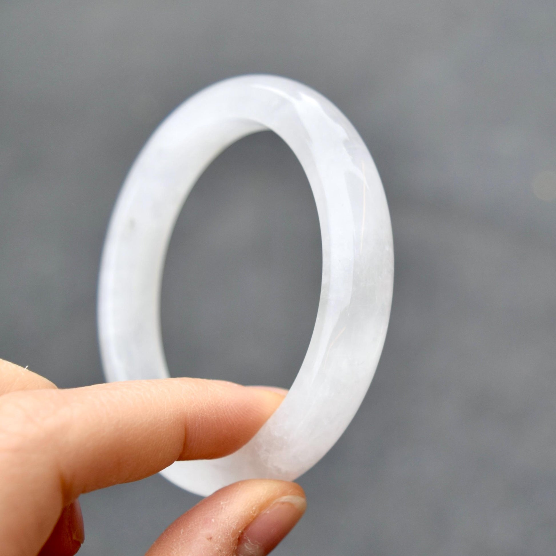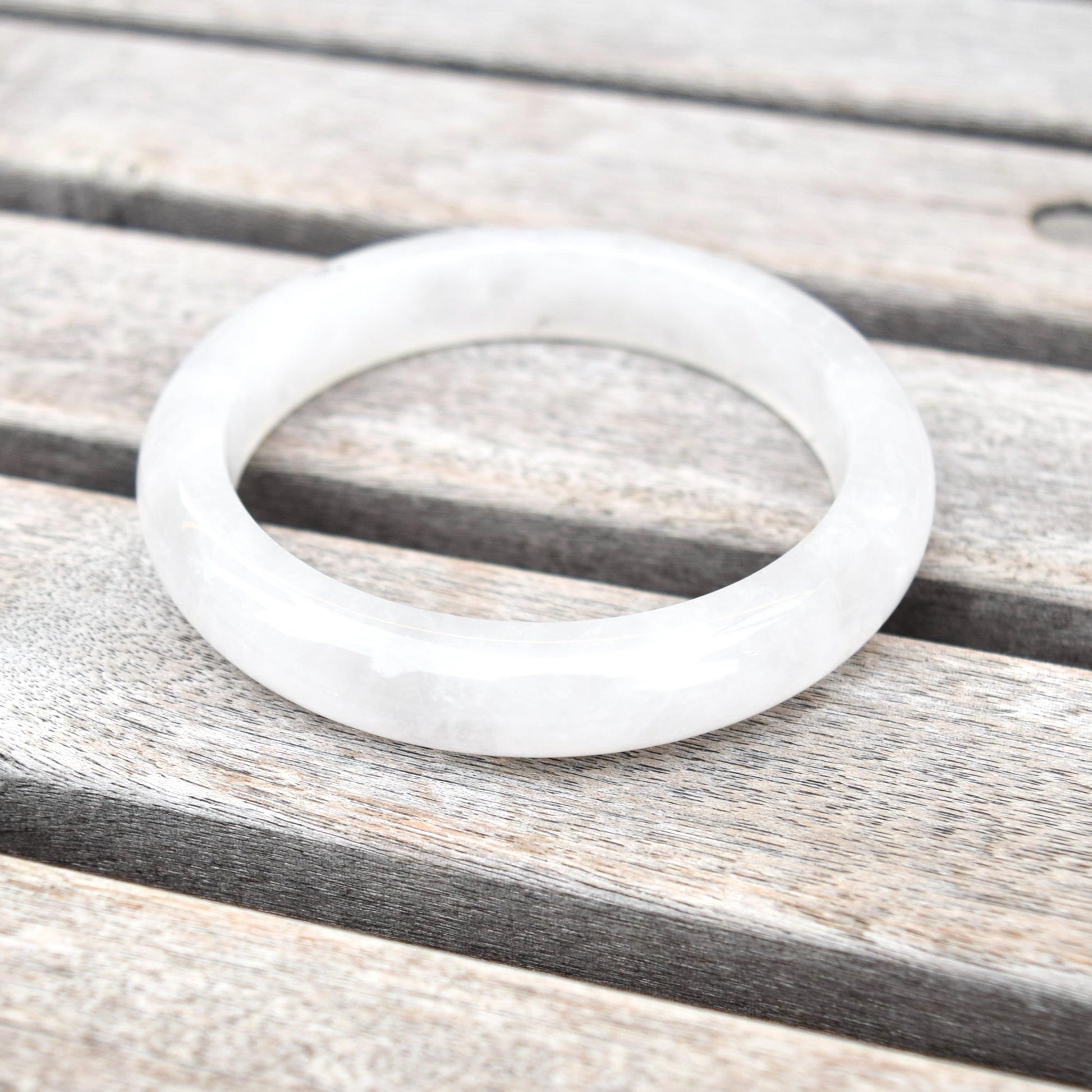 This piece of white bangle is made of natural white clear quartz.