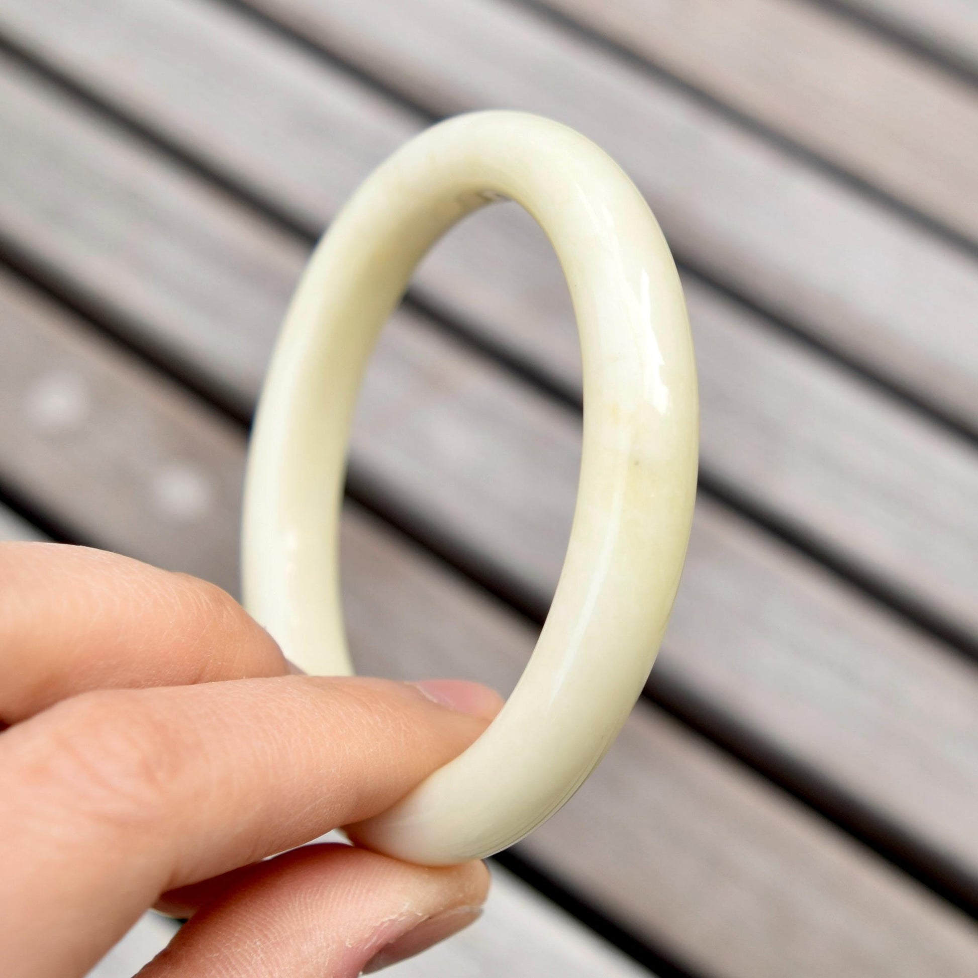 56.5 mm- Natural Xiu Jade Bangle Bracelet - White- Serpentine Jade