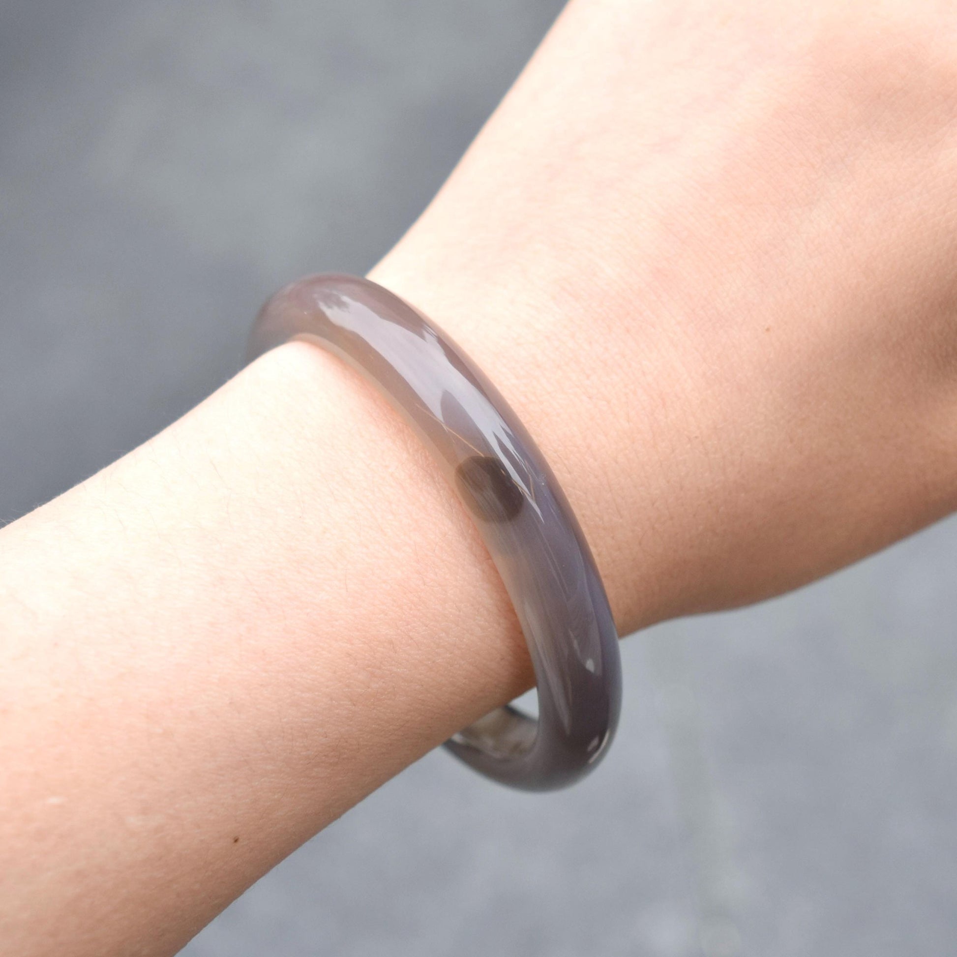 This piece of gray bangle is made of natural agate, with crystal-like purity and jade-like texture.