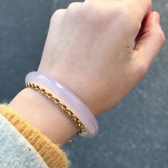 This piece of gray bangle is made of natural agate, with crystal-like purity and jade-like texture.