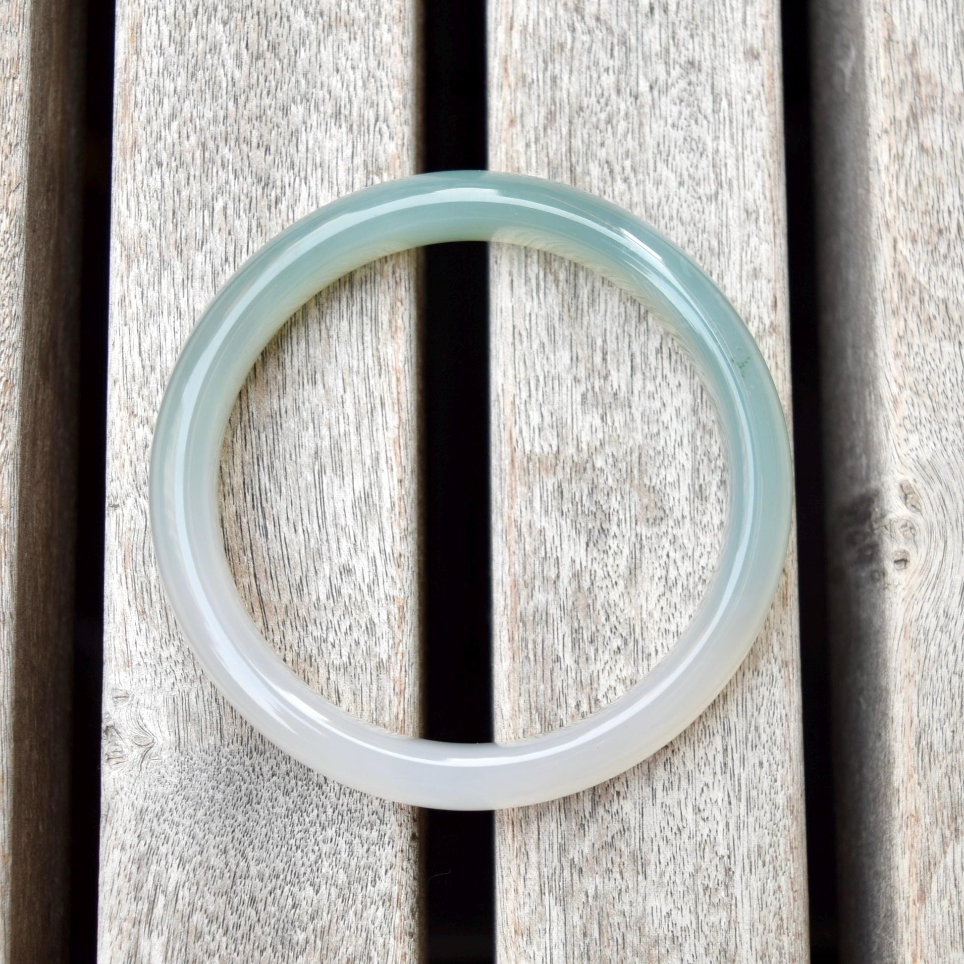 This piece of green bangle is made of natural agate, with crystal-like purity and jade-like texture.