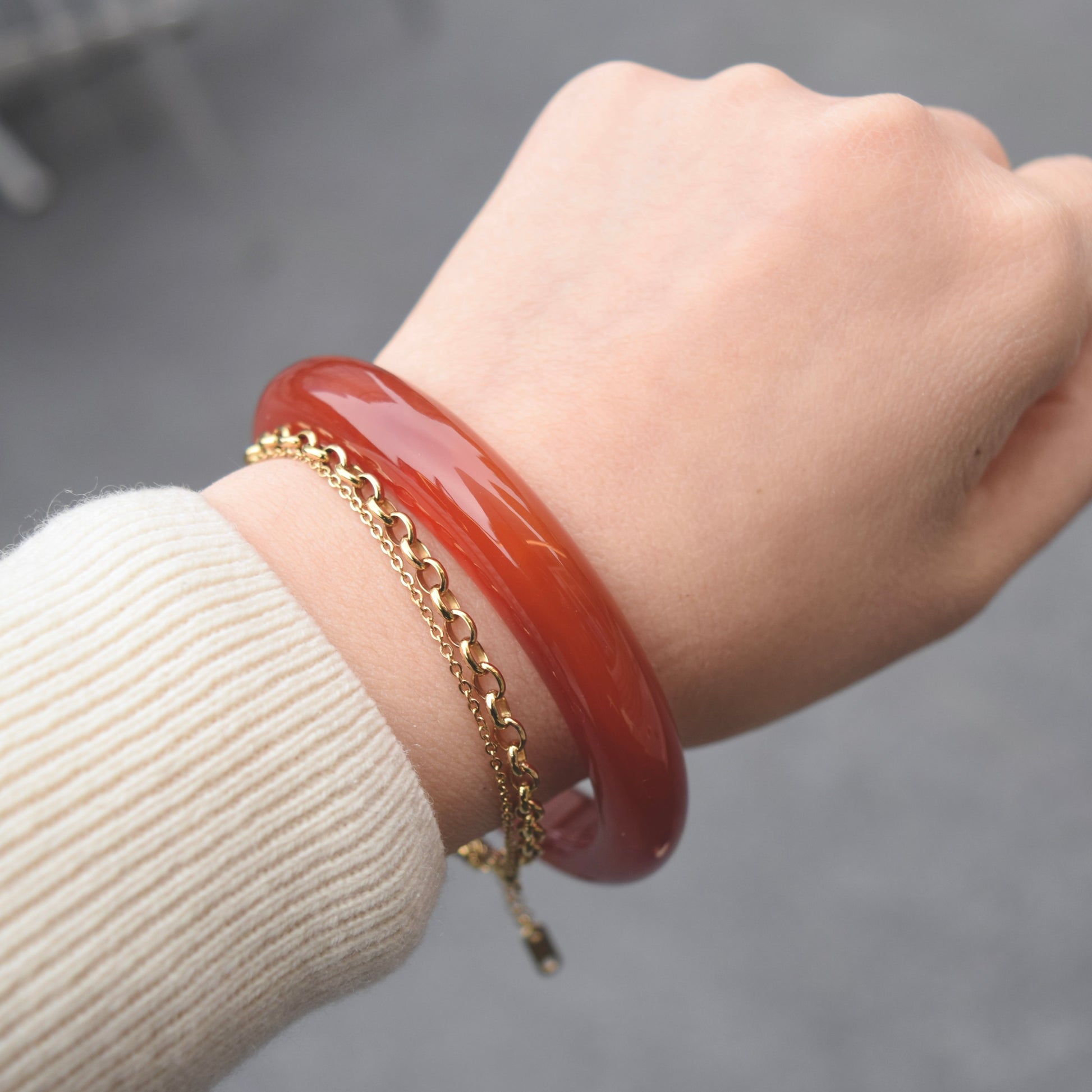 This piece of red bangle is made of natural agate, with crystal-like purity and jade-like texture.
