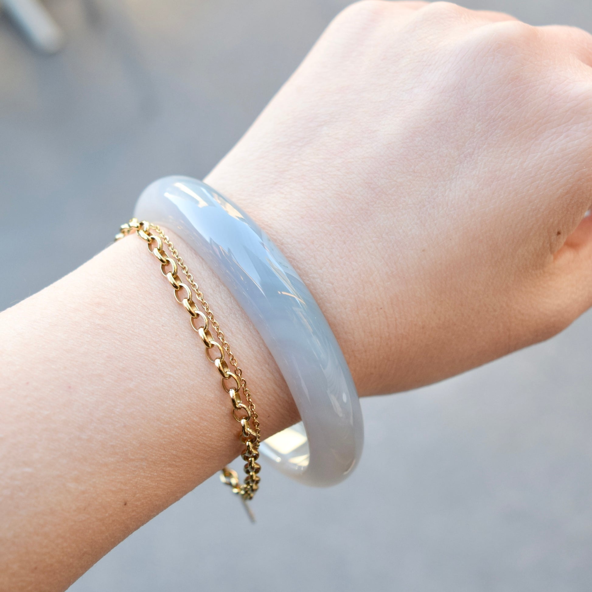 Round ornament represents completeness and happiness in Chinese culture. Therefore, ancient women were keen to wear bracelets to express their hope for a better life. Today, a piece of bangle still highlights the slenderness of the wrist, adding a woman's gentle temperament. It will bring you more coolness especially on hot summer days.