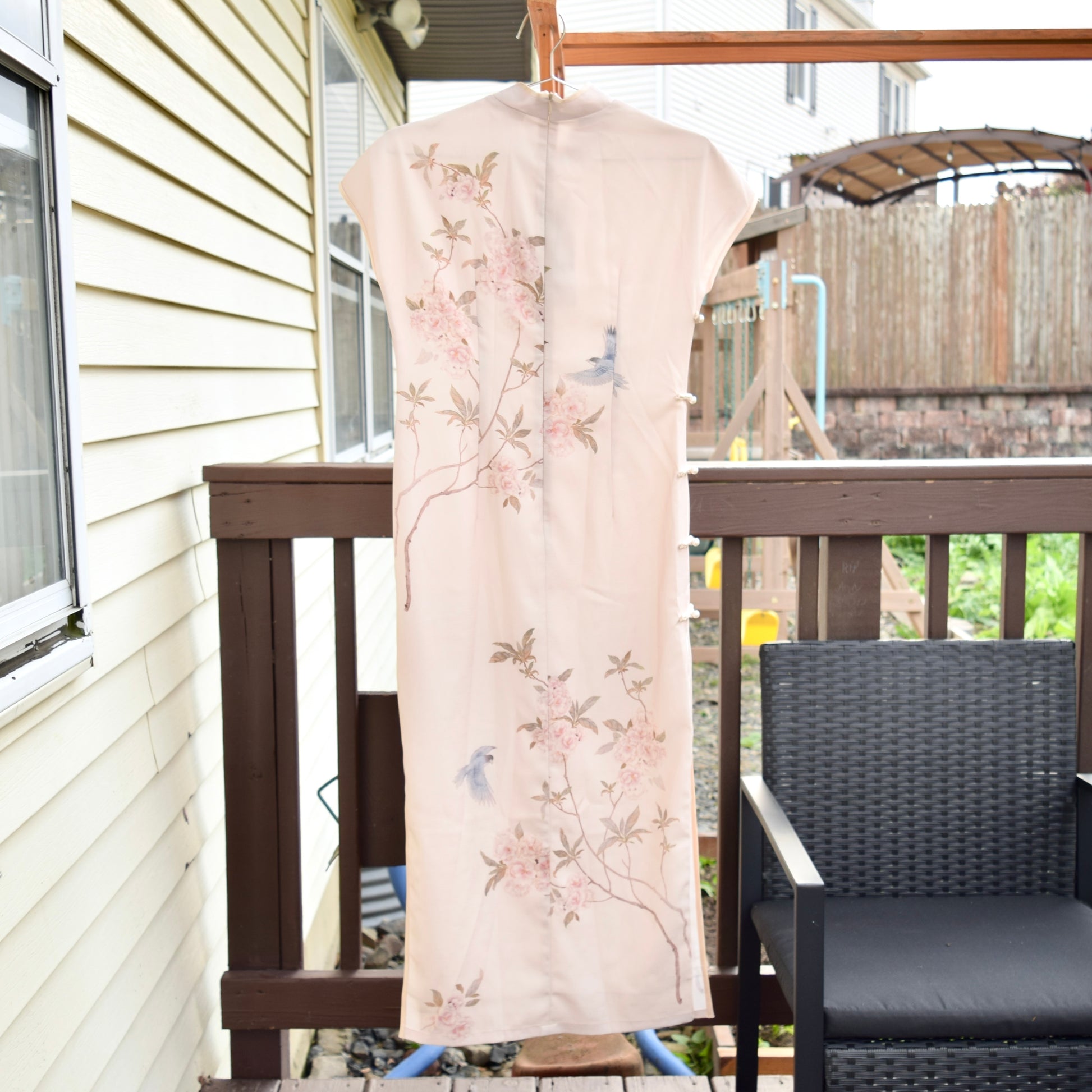 Beige Pink Bird Flowers Qipao Dress - Chinese Traditional Cheongsam