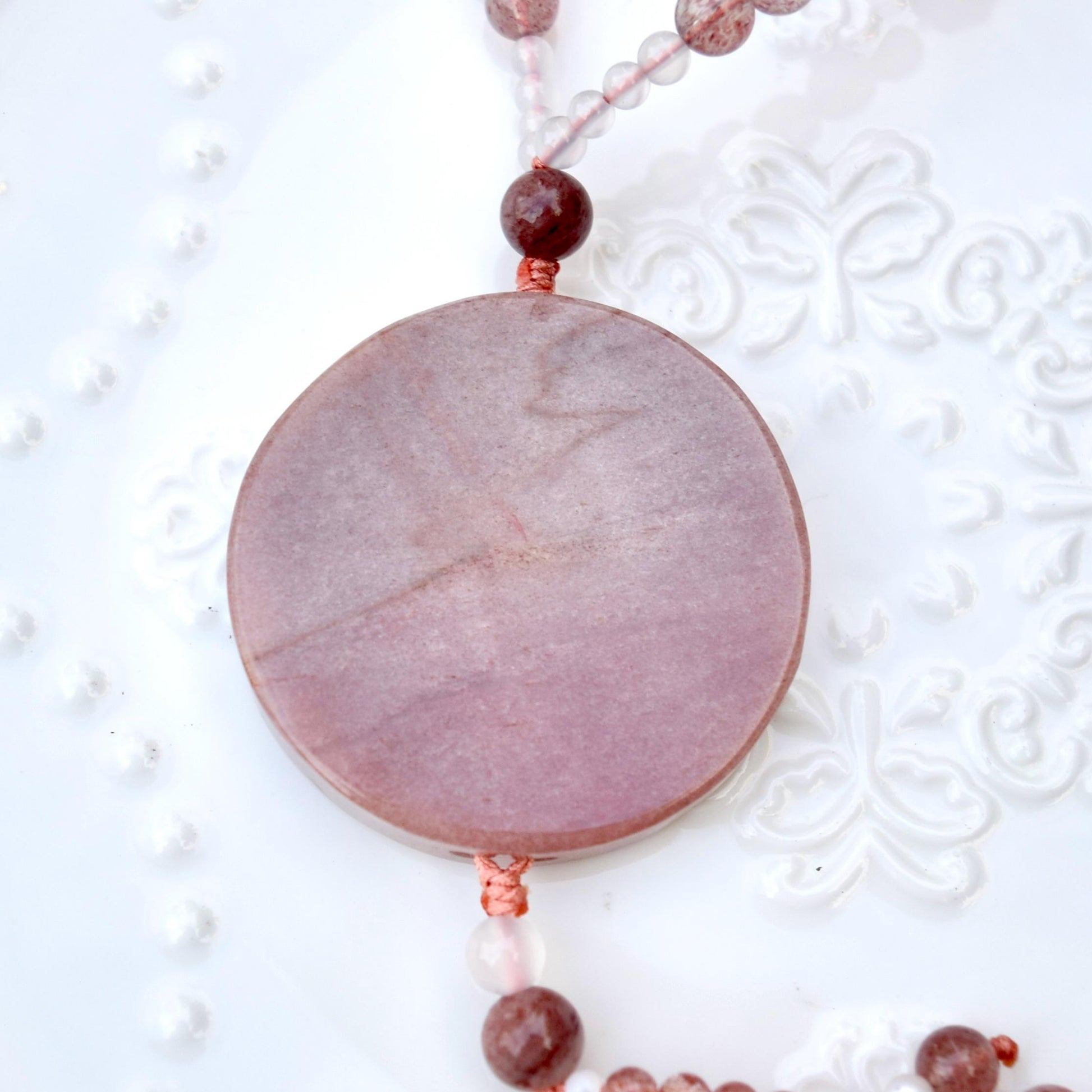 ❊ Carved Quartz Jade Pendant (pink aventurine)