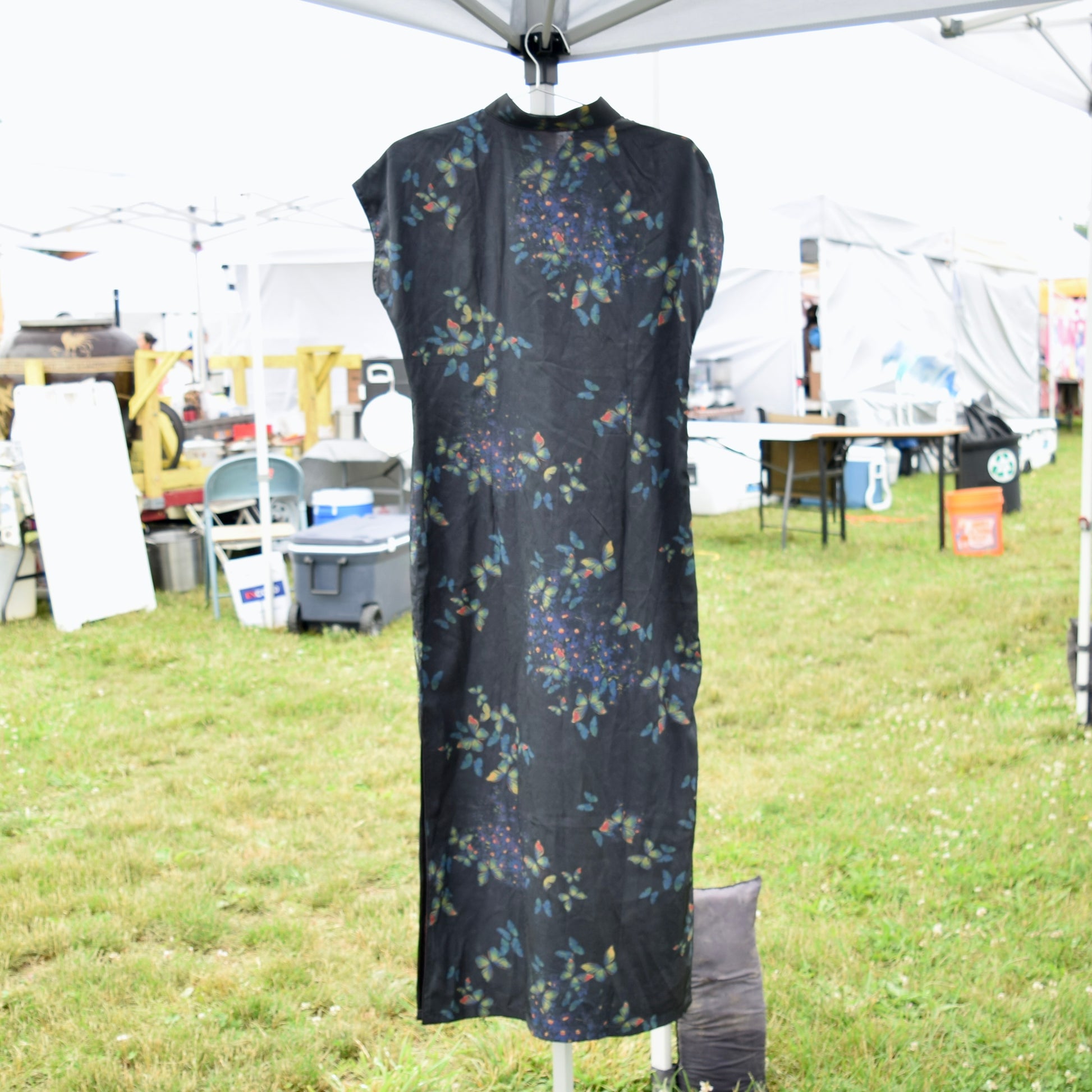 Black Butterfly Printed Qipao Long Dress - Chinese Traditional Cheongsam