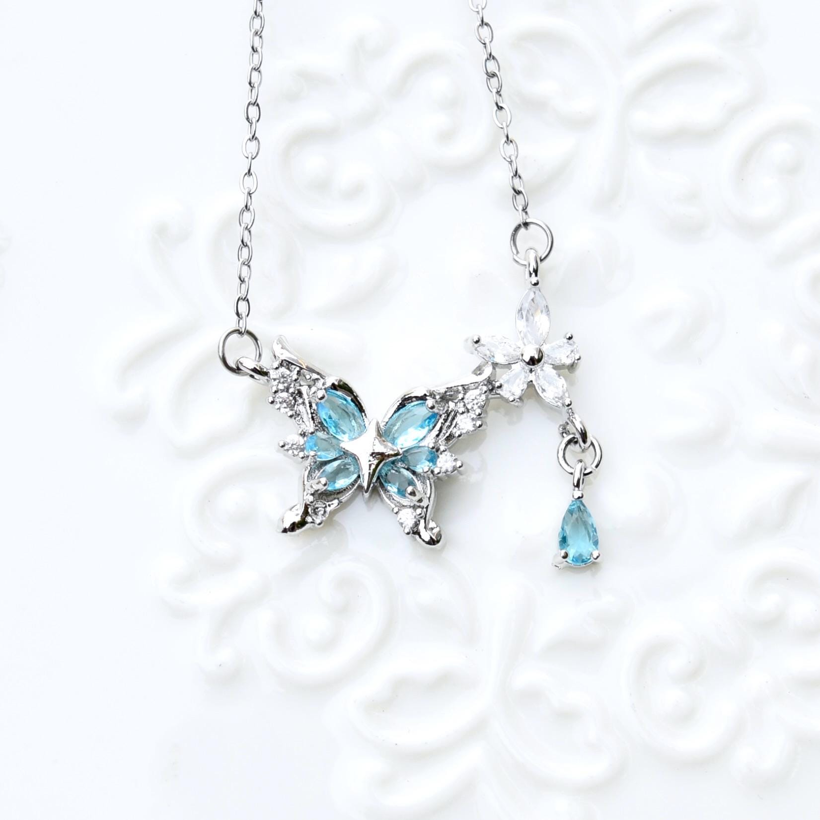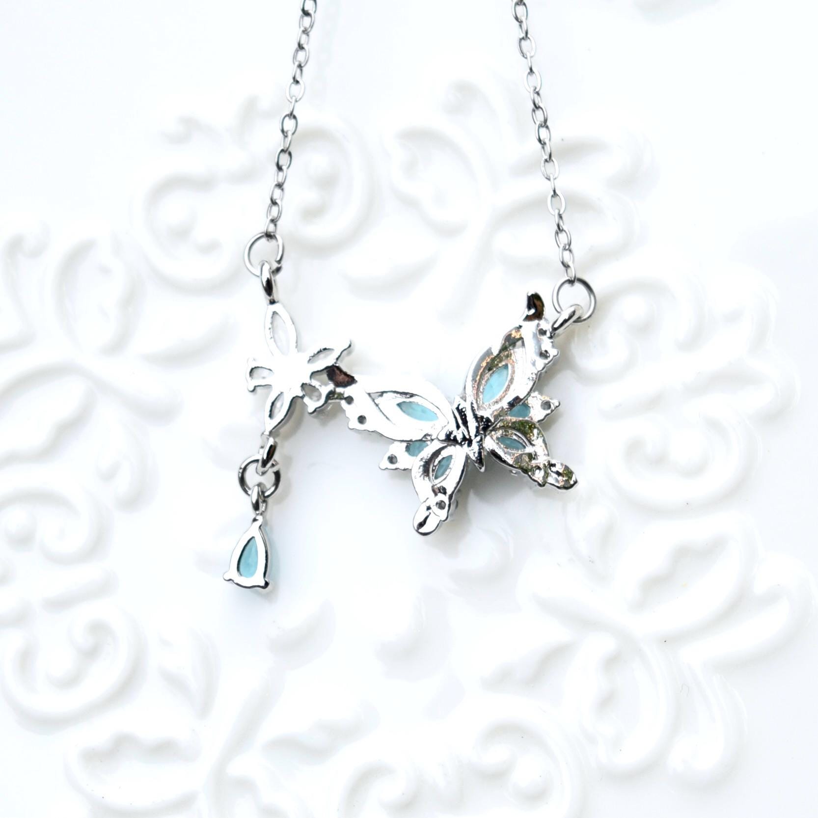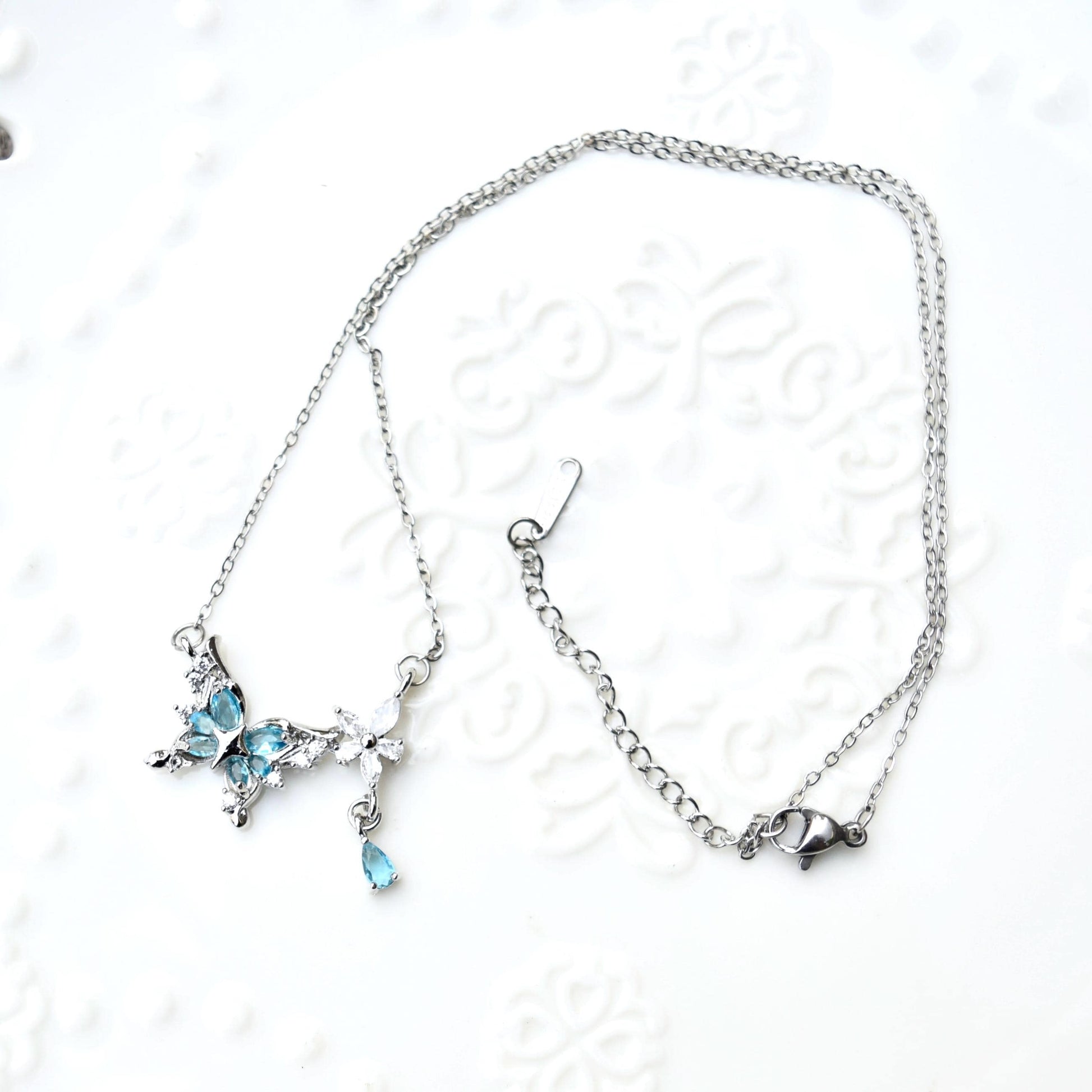 Blue Crystal Butterfly Necklace - Stainless Steel Necklace