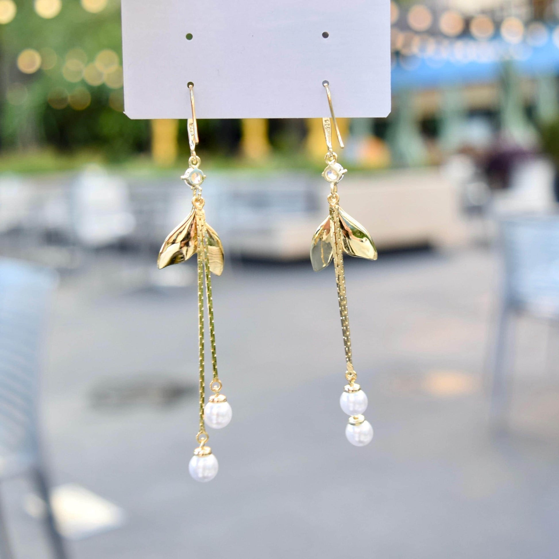 This pair of earrings features blue fish tail charms. Elegant and gorgeous, they are perfect to wear on holiday and other important occasions.