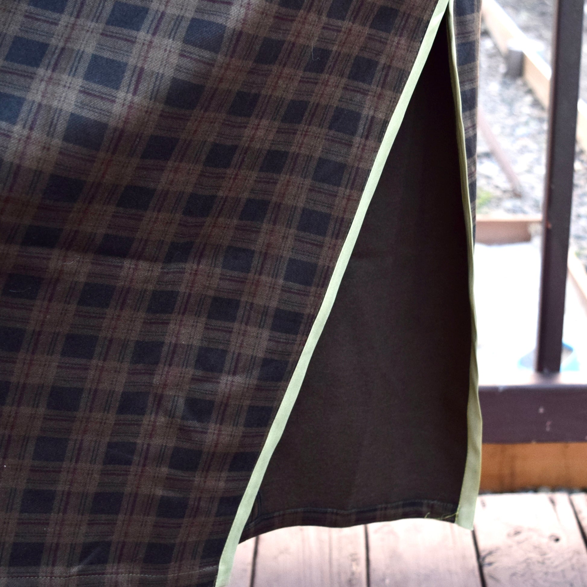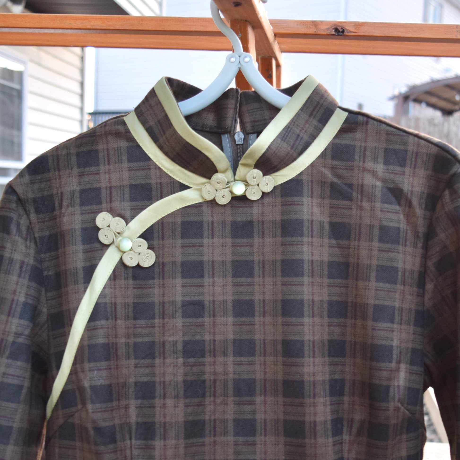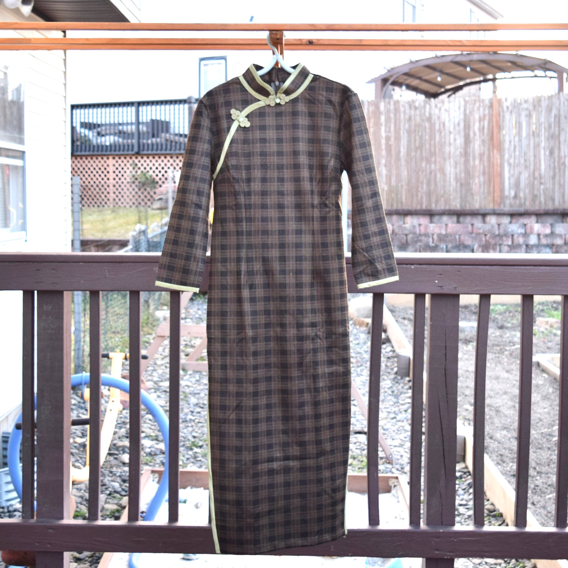 Brown Green Plaid Qipao Midi Dress - Chinese Traditional Cheongsam