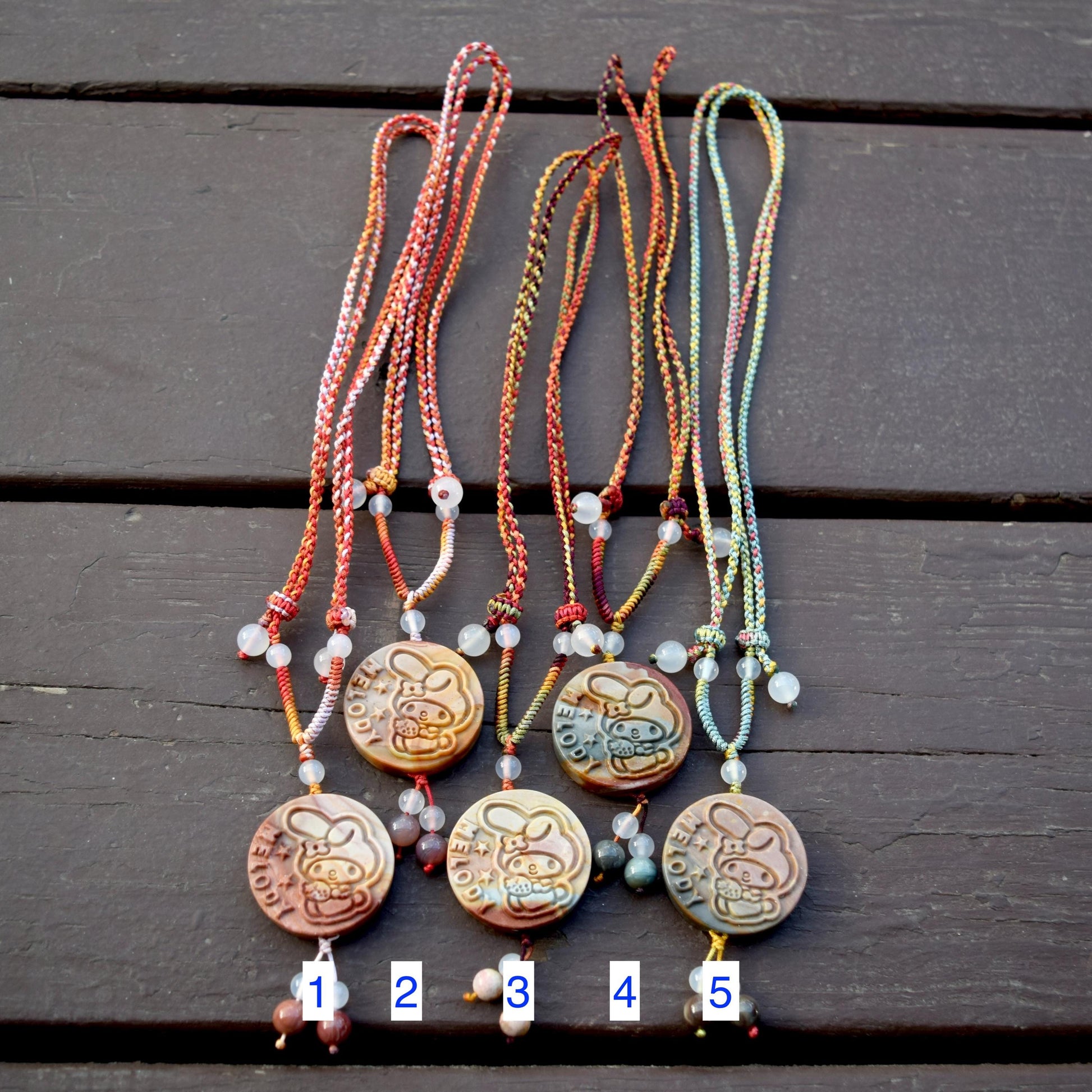 Colorful Melody Rabbit Pendant Braided Necklace - Ocean Jasper 海洋石 - Adjustable Rope Necklace