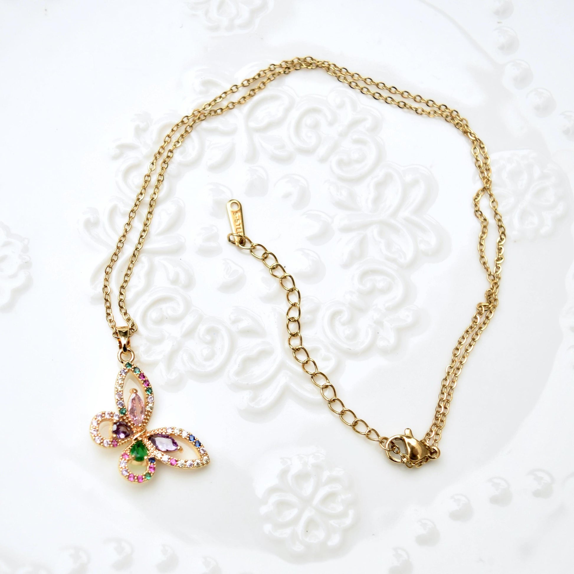Crystal Butterfly Rose Necklace - Stainless Steel Necklace