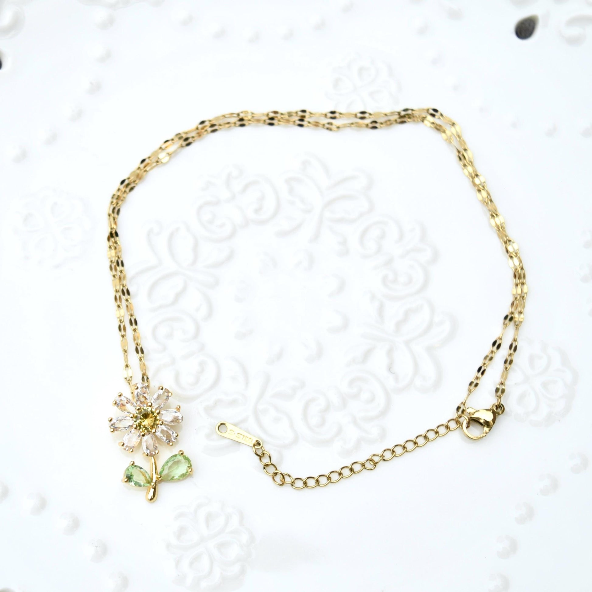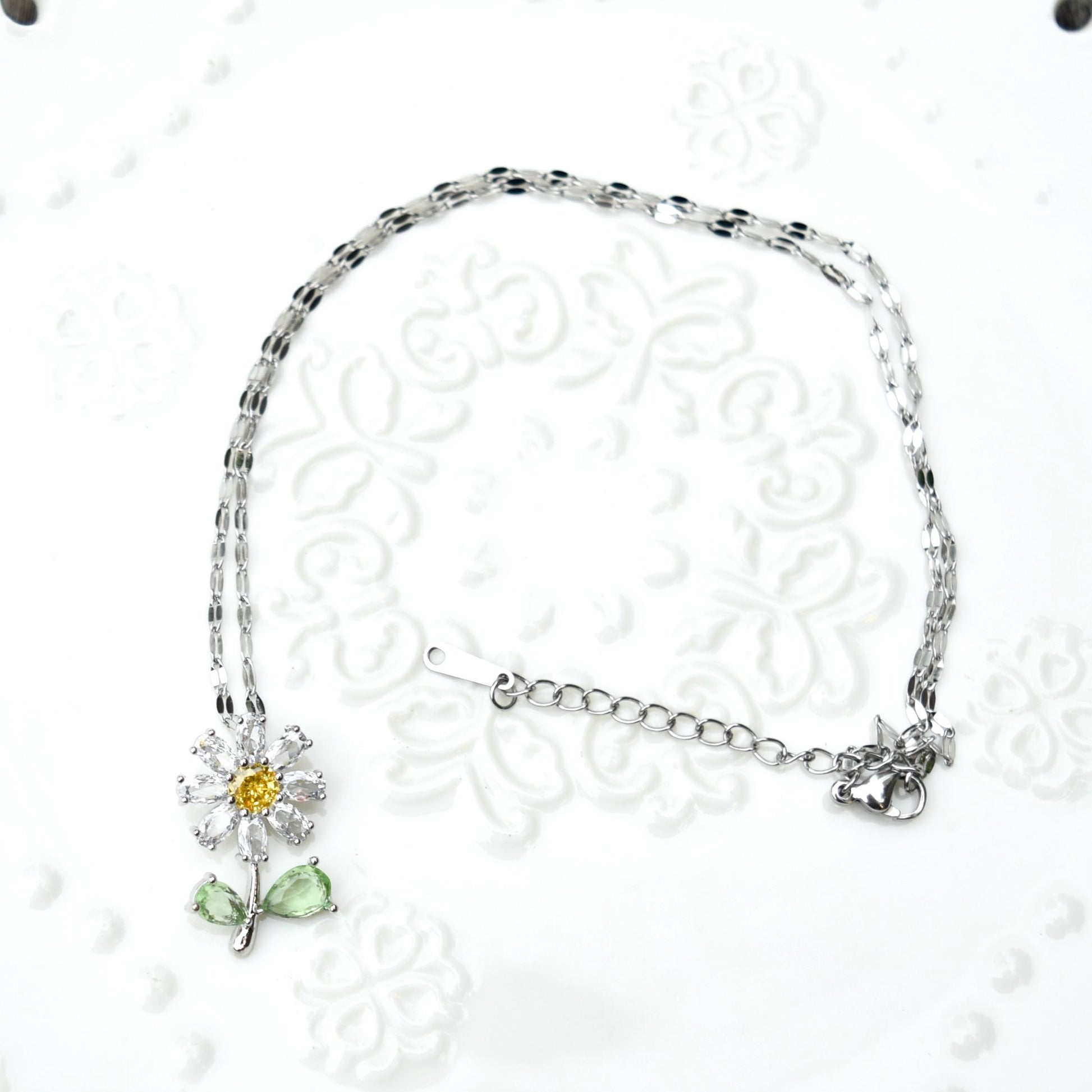 Crystals Icy Flower Charm Necklace - Cubic Zirconia Stainless Steel Necklace