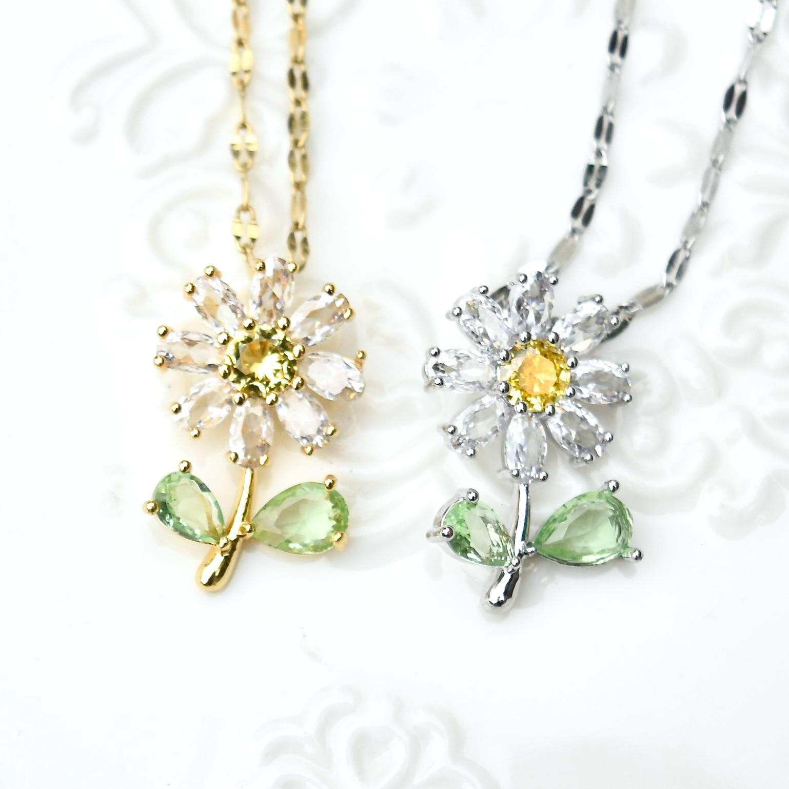 This cute jewelry set features crystals flower, made of cubic zirconia. The paired chain is made of gold / silver plated stainless steel with wonderful color retention. It's perfect matching other gold or silver necklaces as layered jewelry and you can wear this necklace daily or on special occasions! Also making a wonderful gifts for her on holiday!
