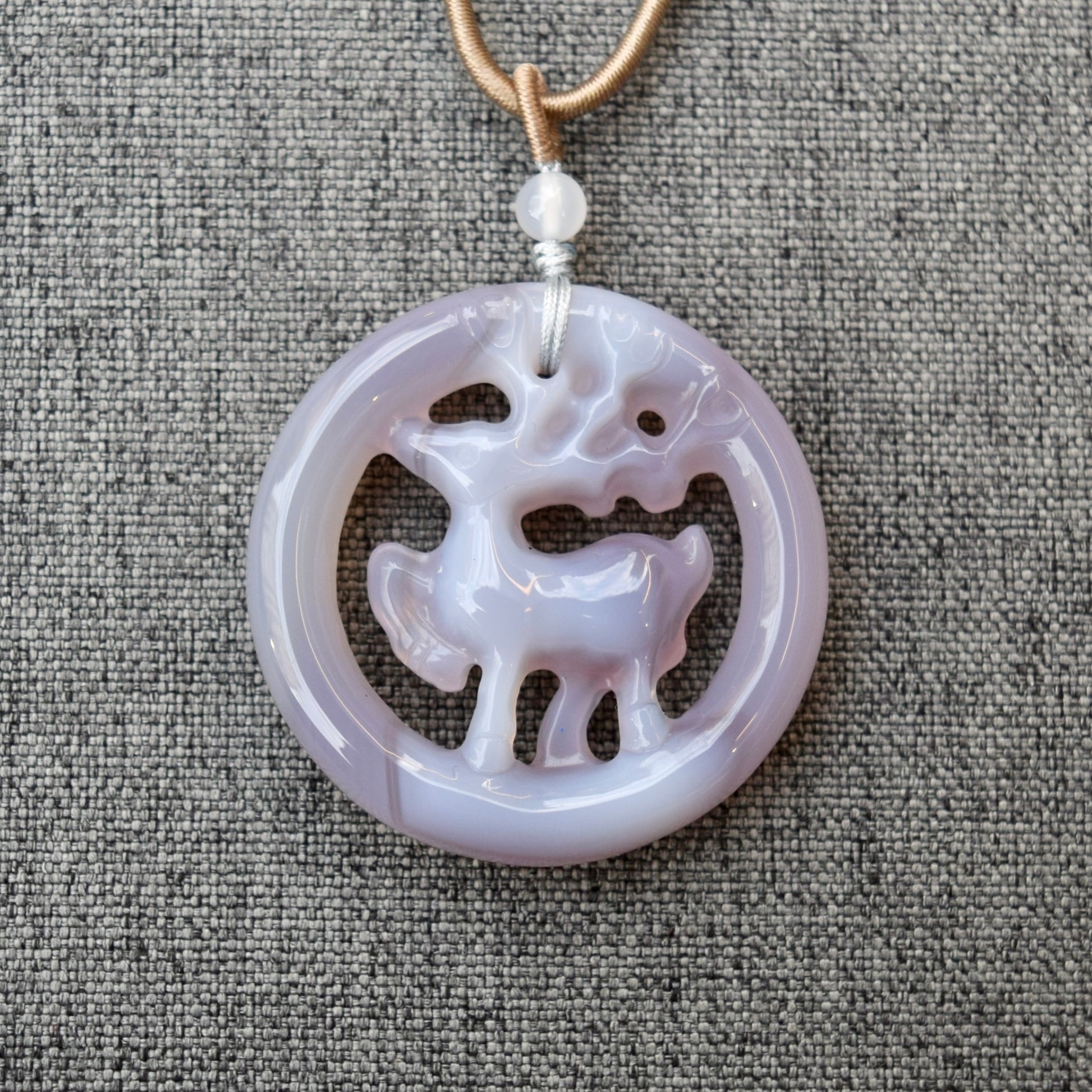 This featured agate pendant is carved as bull with peace buckle or double-sided deer. Giving it as a gift, whether to her or to yourself, is a beautiful way to convey the best wishes and blessings.