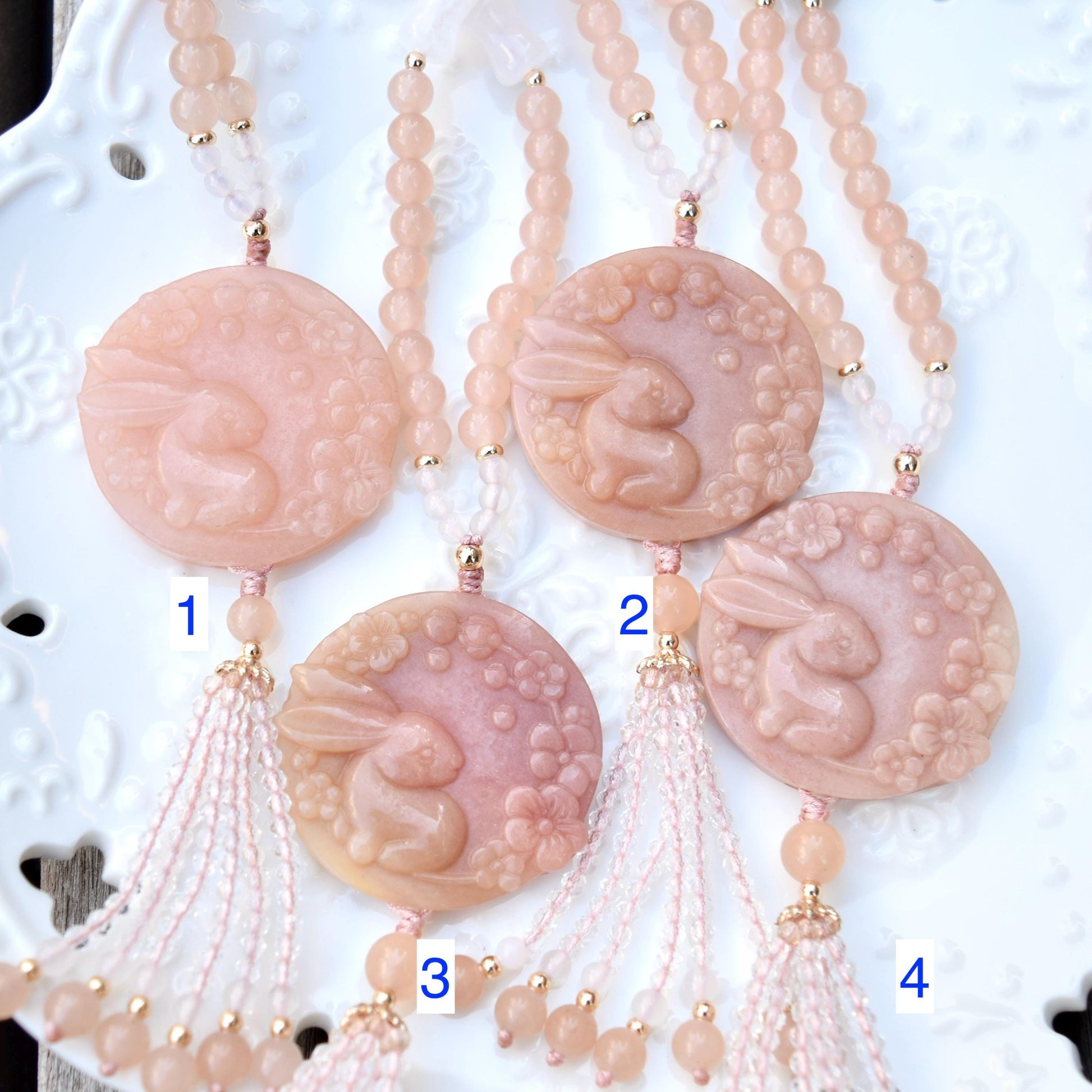 Flora Rabbit Necklace - Orange Quartz Jade Beaded Chain