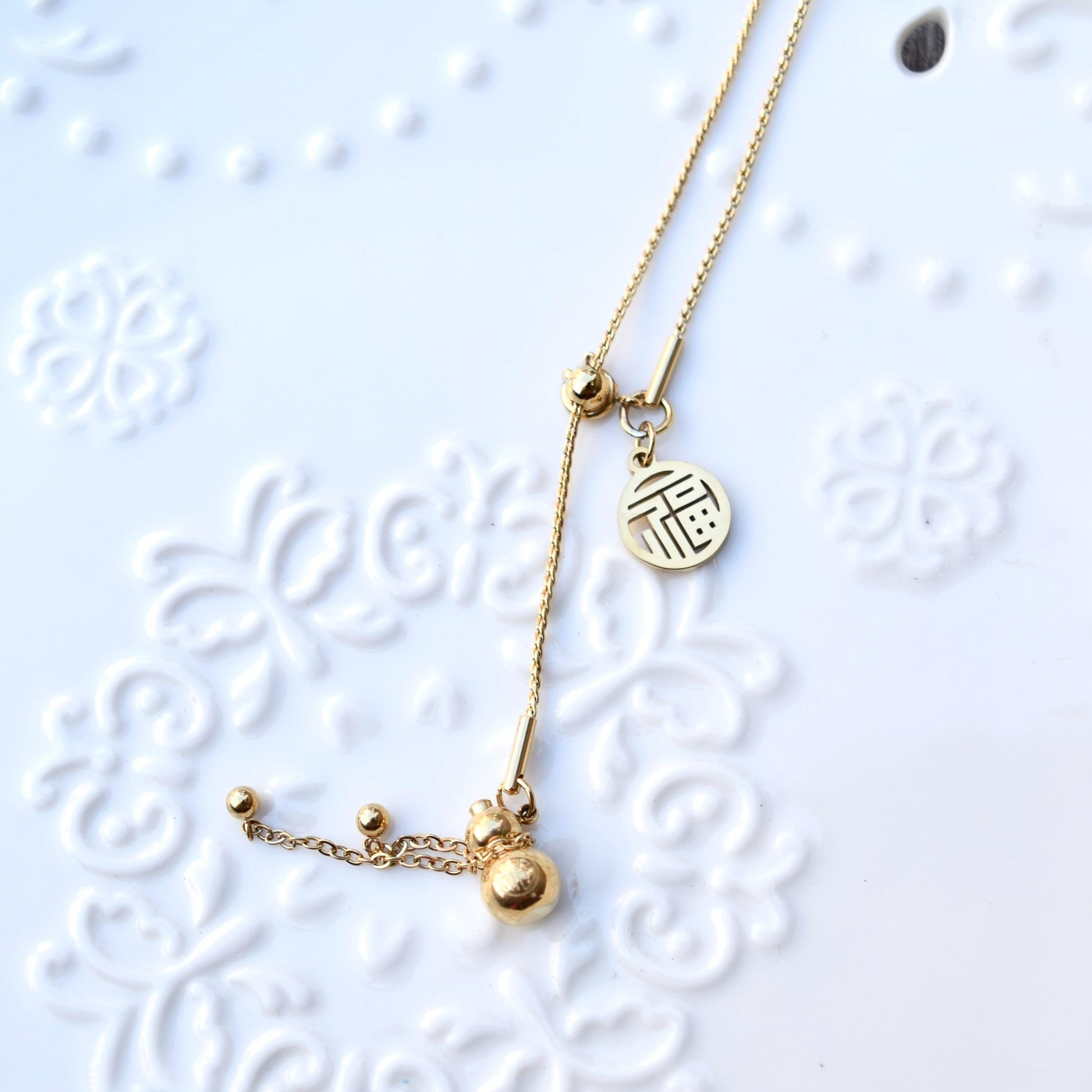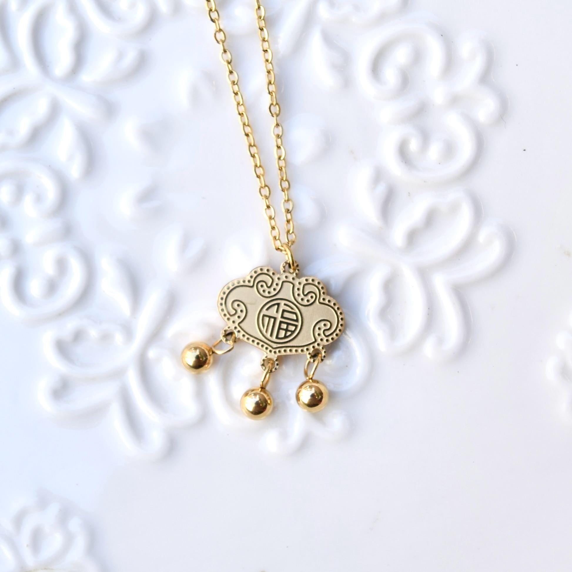 This traditional necklace collection features Chinese patterned Fortune (福) word. They also include Chinese gourd, lock, and bag, express sweet blessings to people in a new year!
