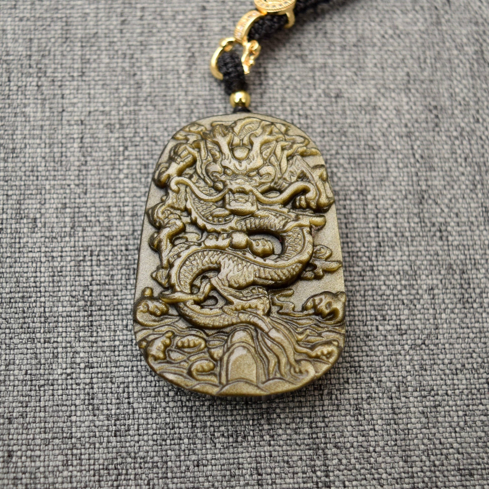 Golden Obsidian Dragon Pendant Necklace