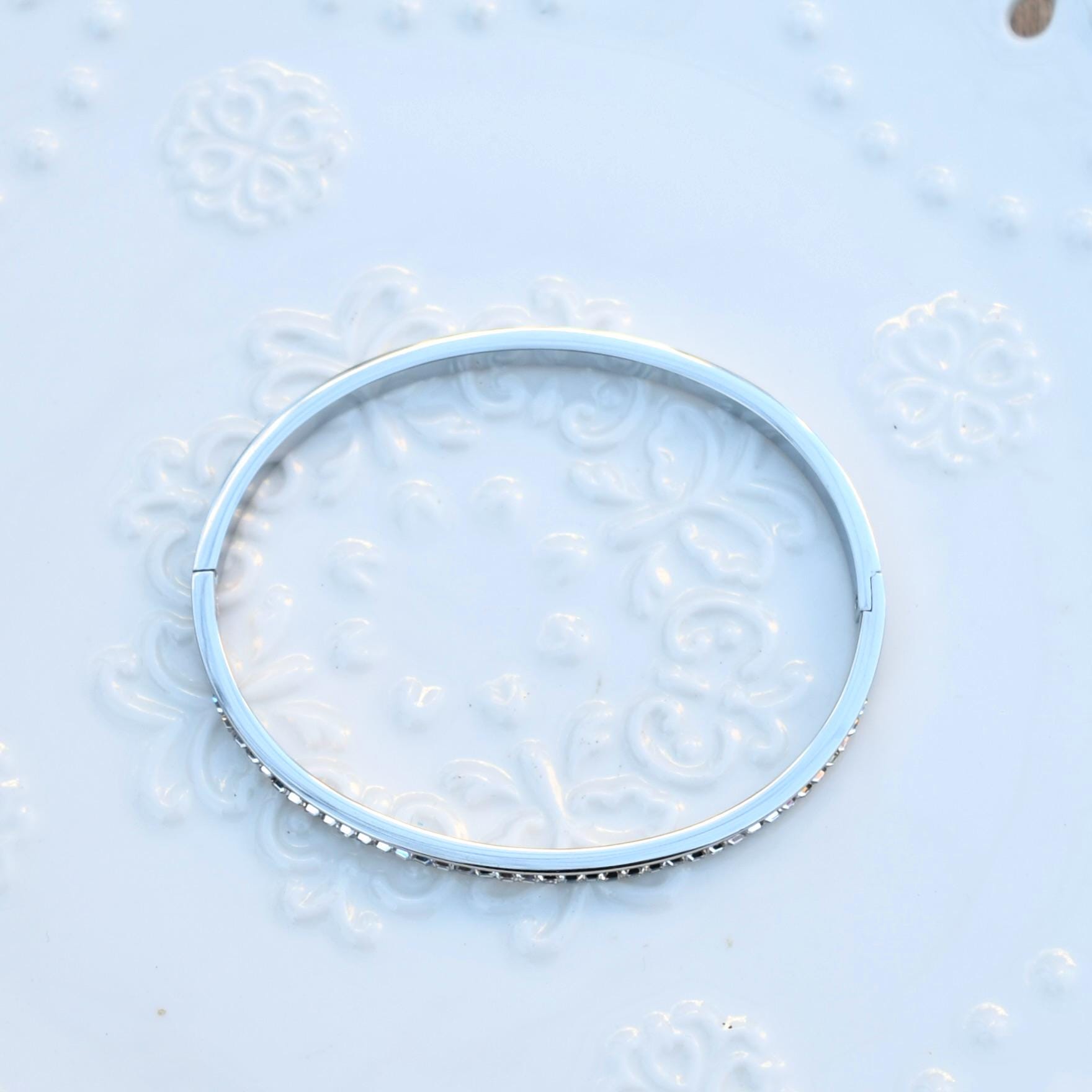 This metal bracelet is half set with CZ diamonds and half features a sleek, polished plain surface, creating delicate and minimalist style. Designed with a clasp that can be opened, it's a one-size-fits-all bracelet and suitable for most people to wear.