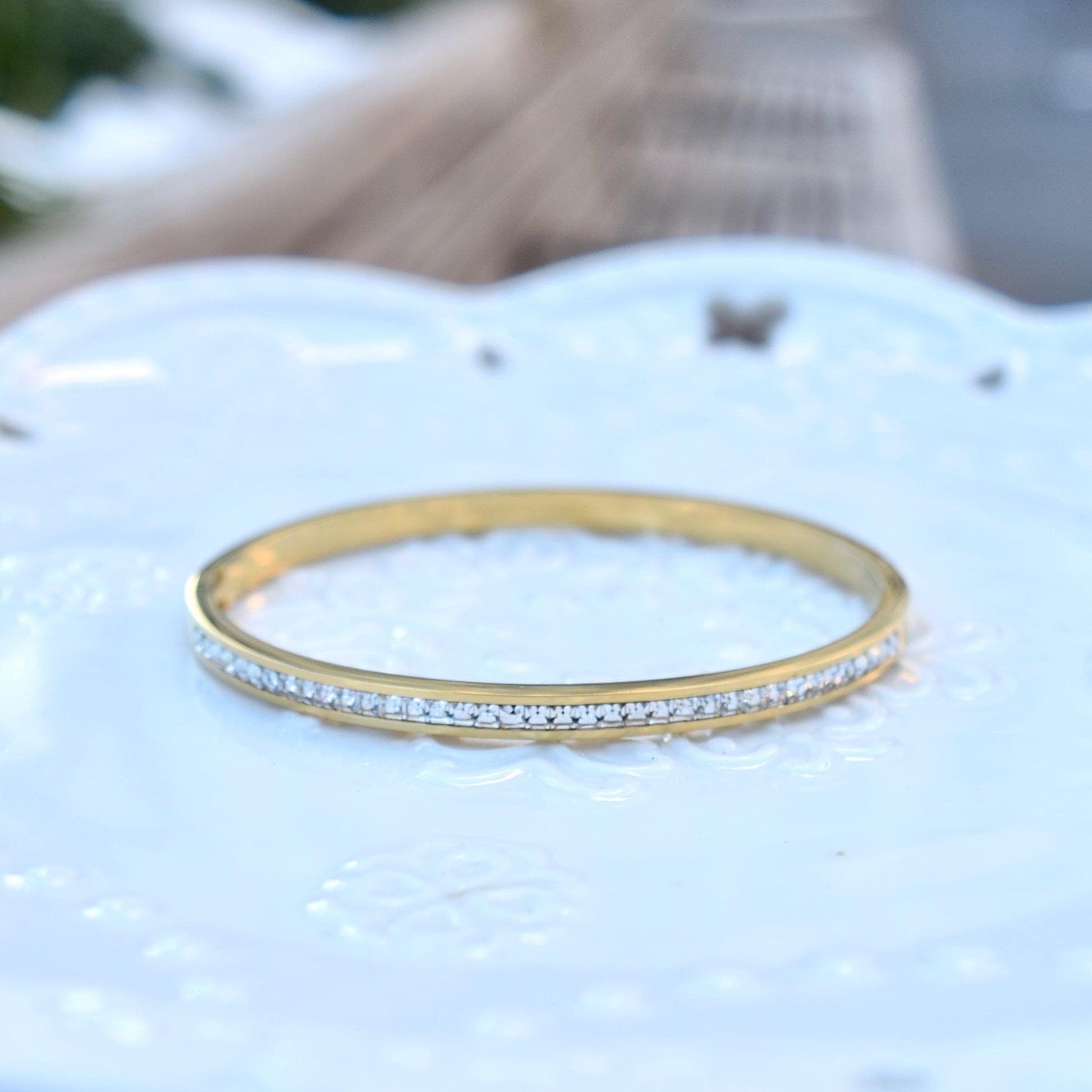 Golden Silver Crystal Bangle - Stainless Steel CZ Diamond