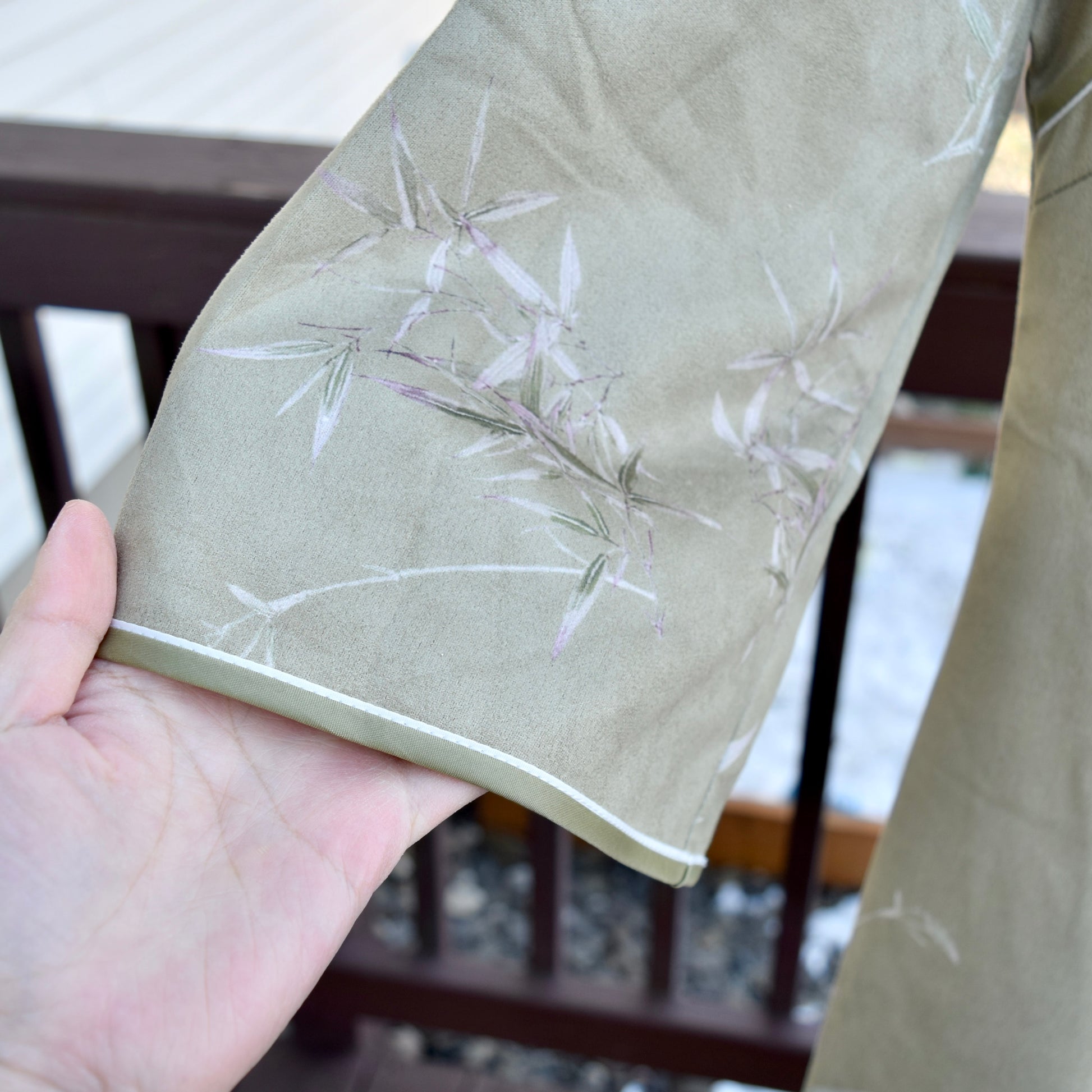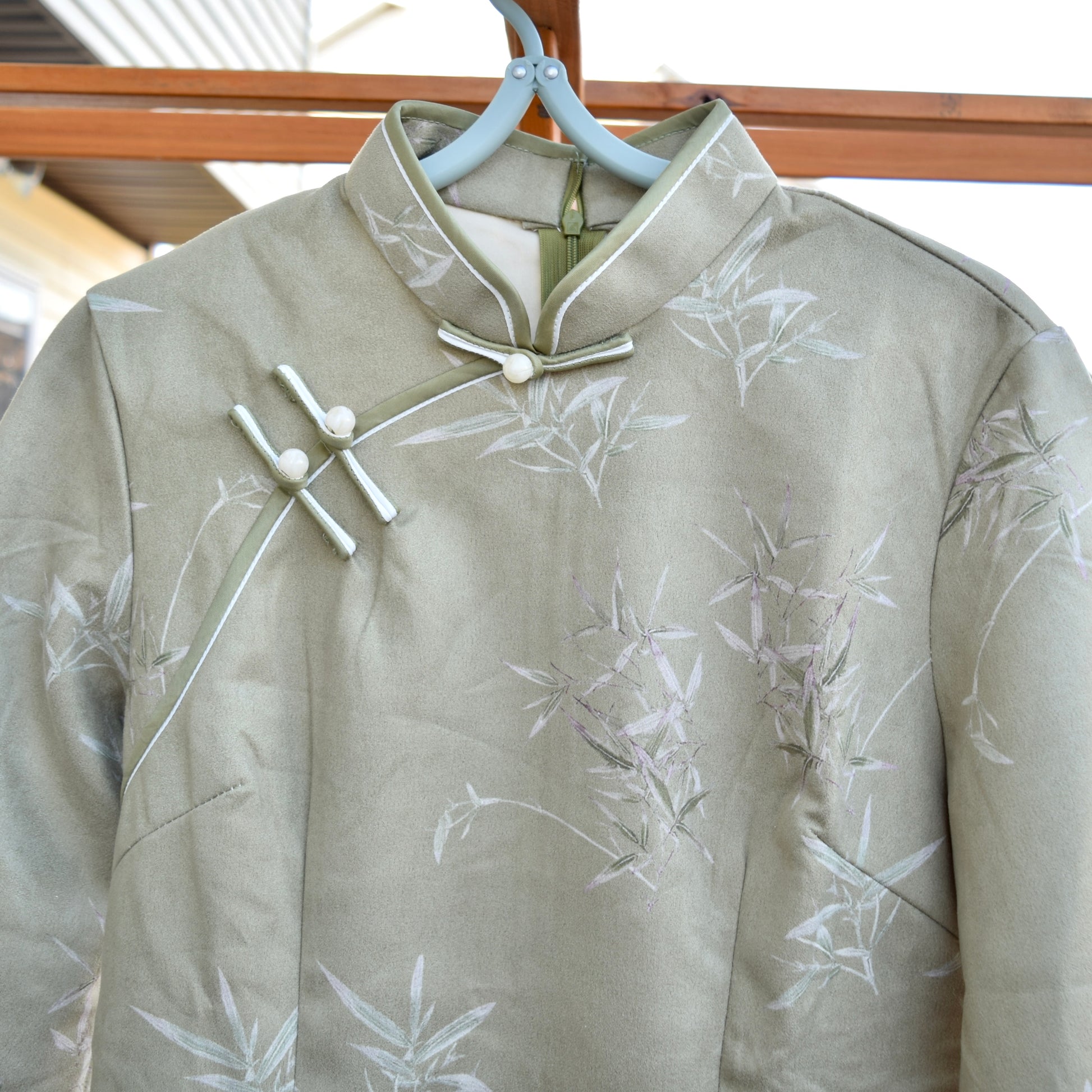 Green Bamboo Qipao Midi Faux Suedue Dress - Chinese Traditional Cheongsam