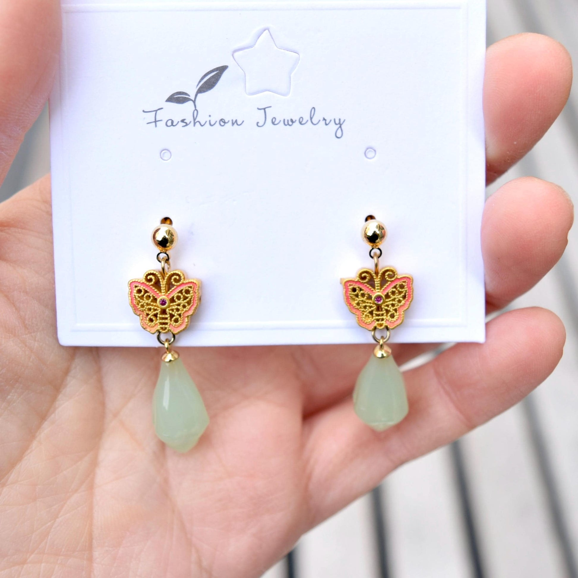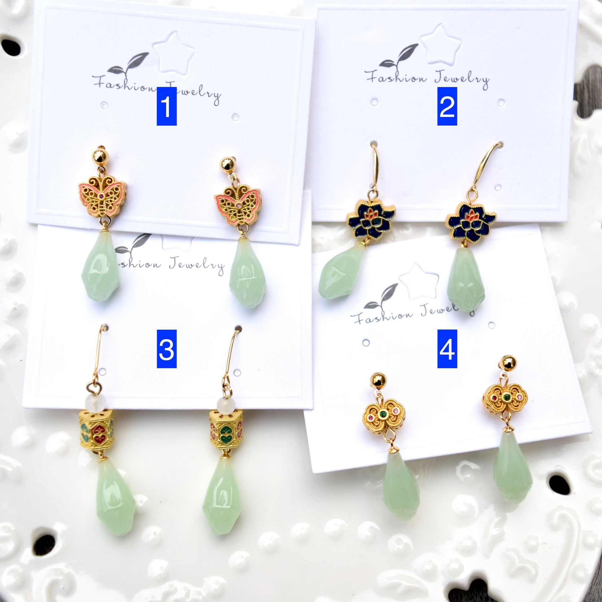 Green Jade Tone Flora Enamel Charm Earrings - Asian Style Earrings