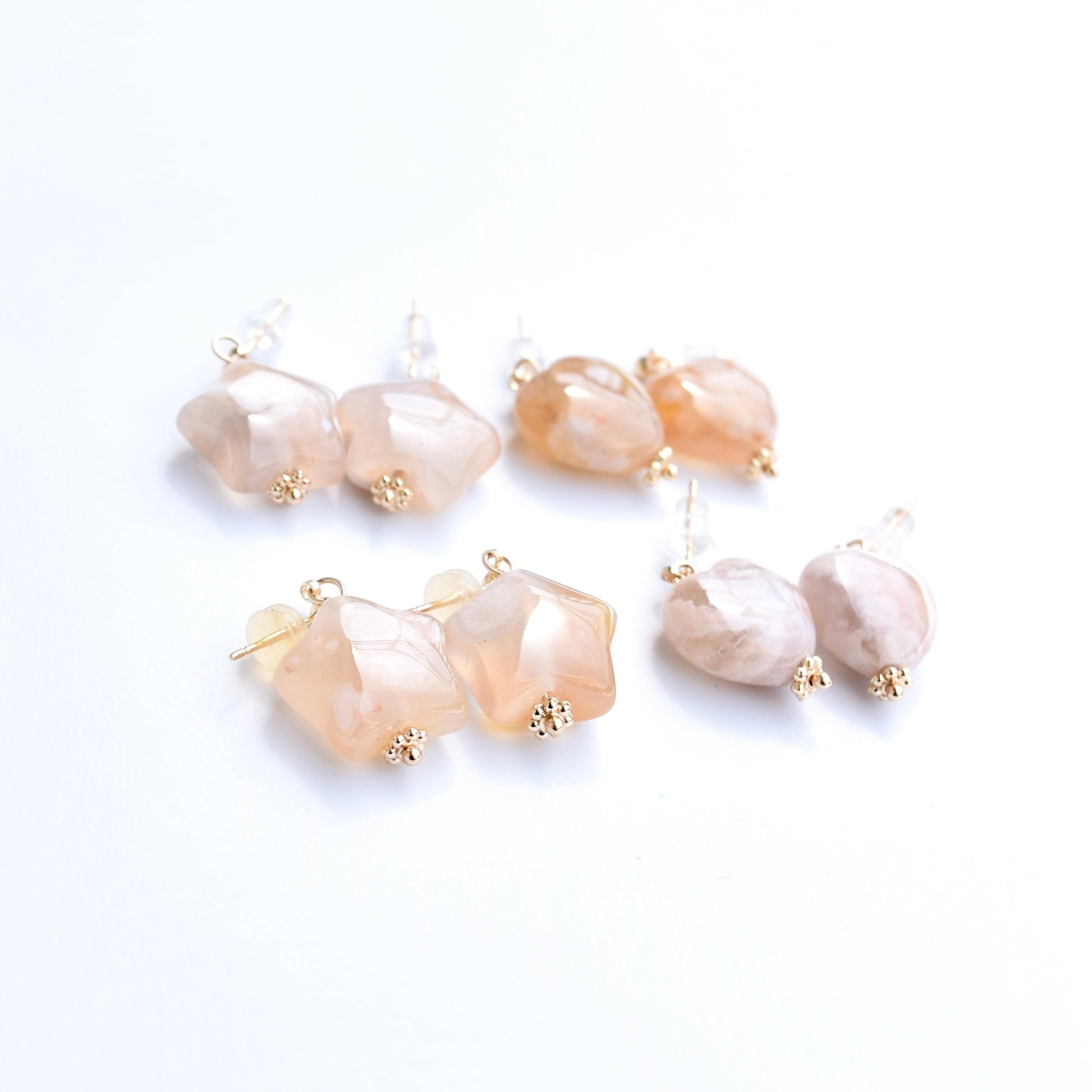 These earrings feature natural sakura agate (櫻花瑪瑙) charms and create a classic and elegant style. They are wonderful gifts for her on holiday! You can wear them daily or on special occasions!