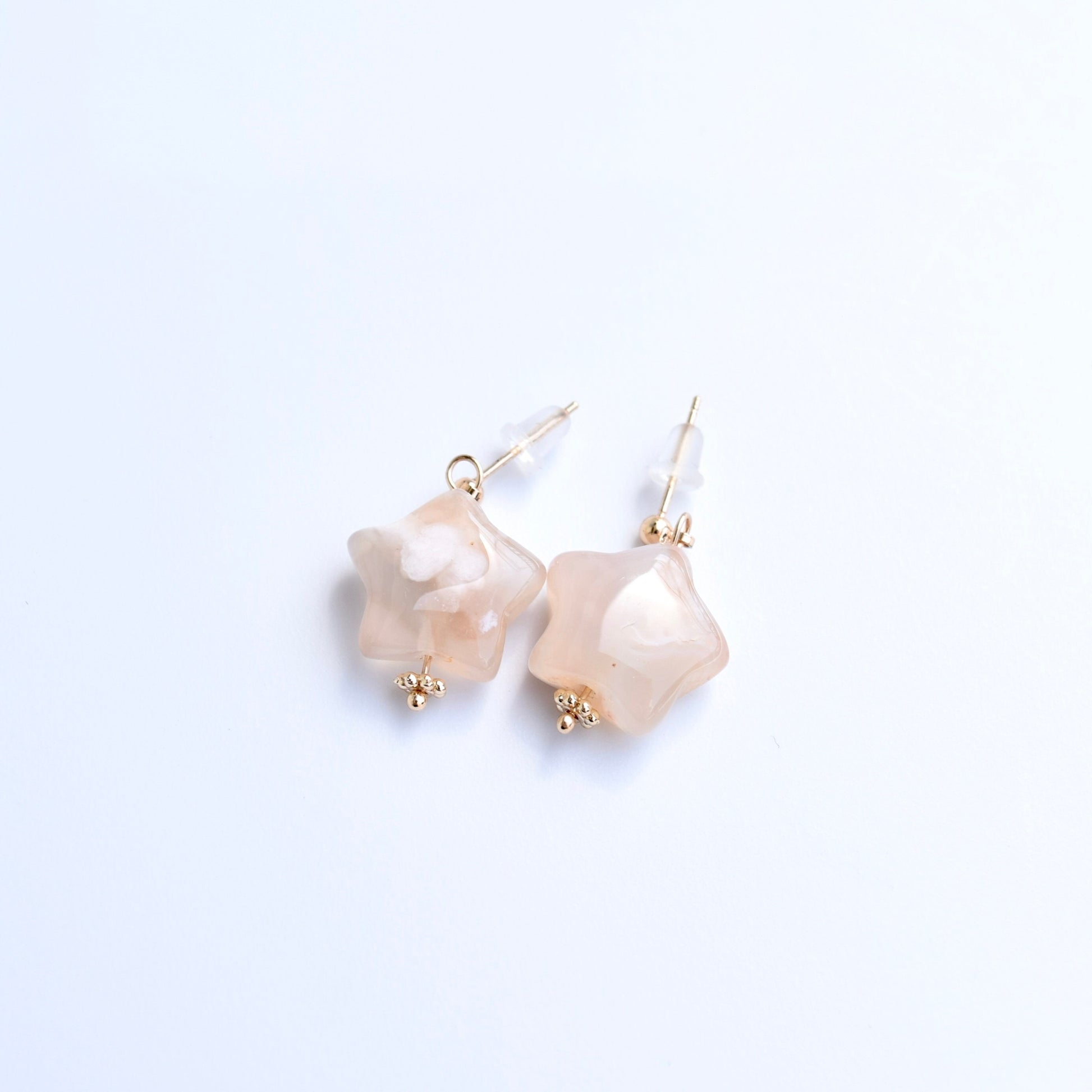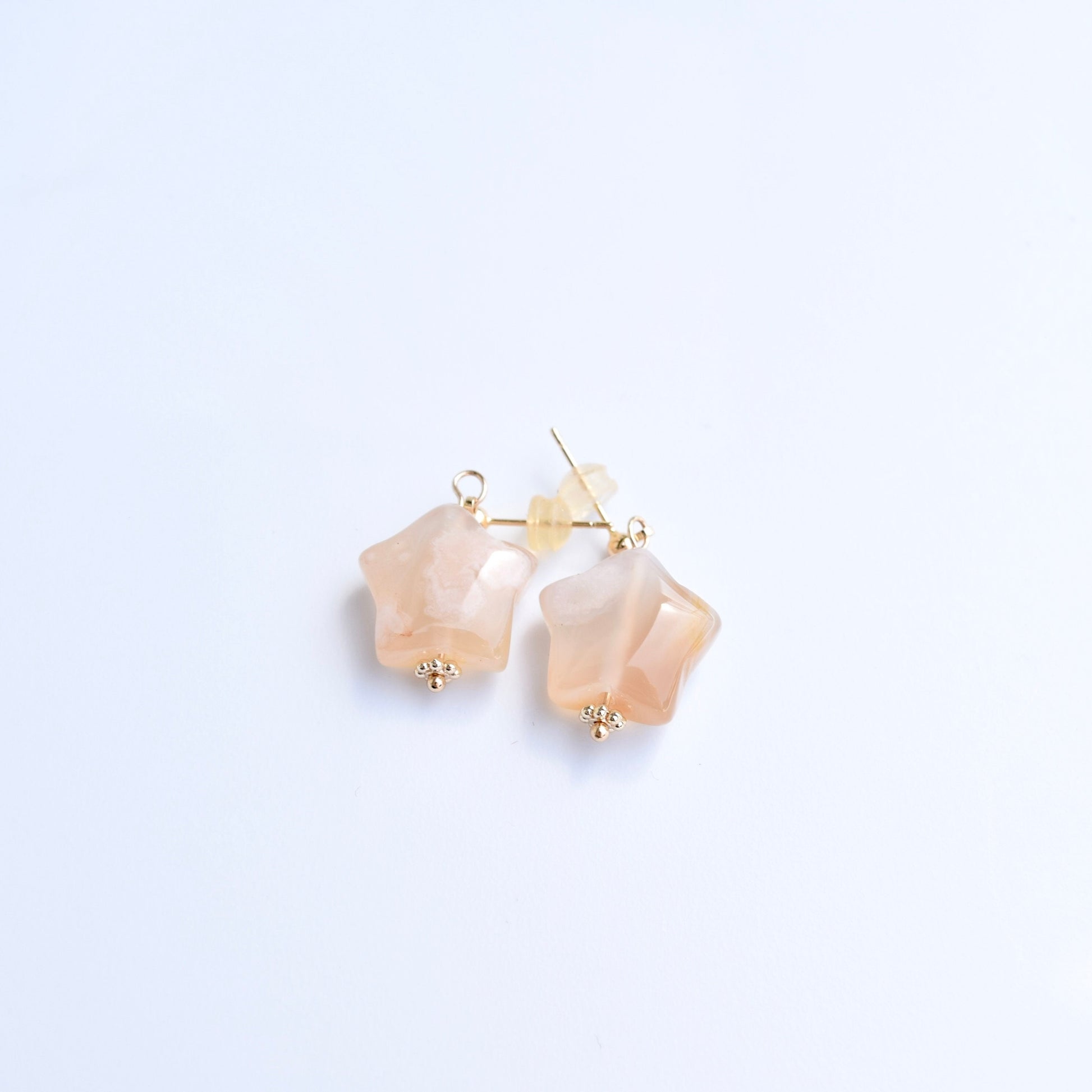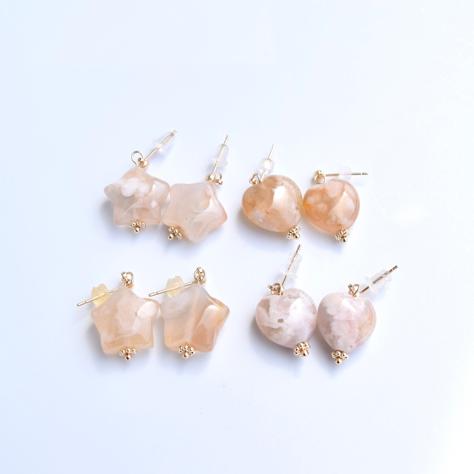 Heart Star Stud Earrings - Natural Sakura Agate Charm 櫻花瑪瑙