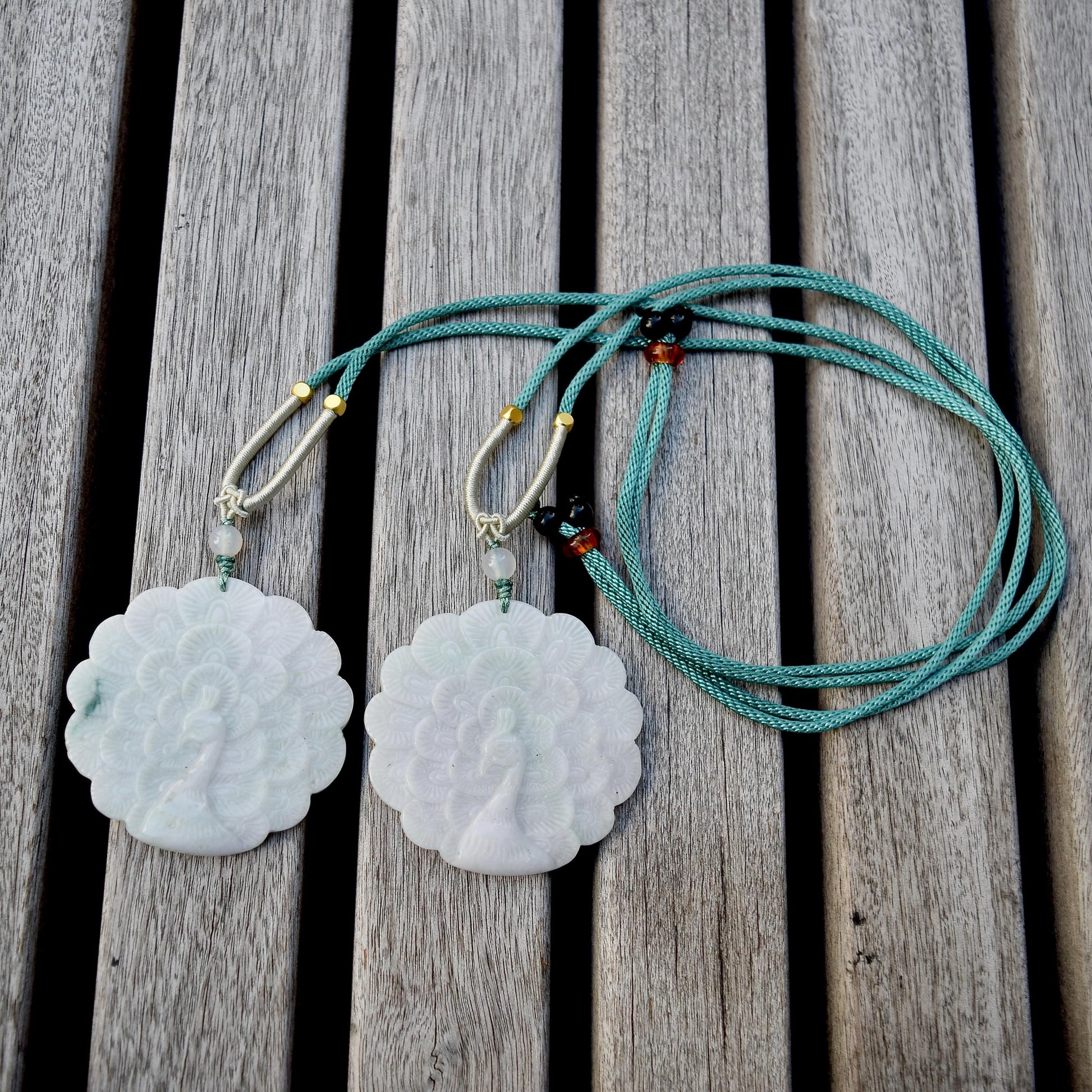 Jadeite Peacock Pendant Rope Necklace - 天然翡翠