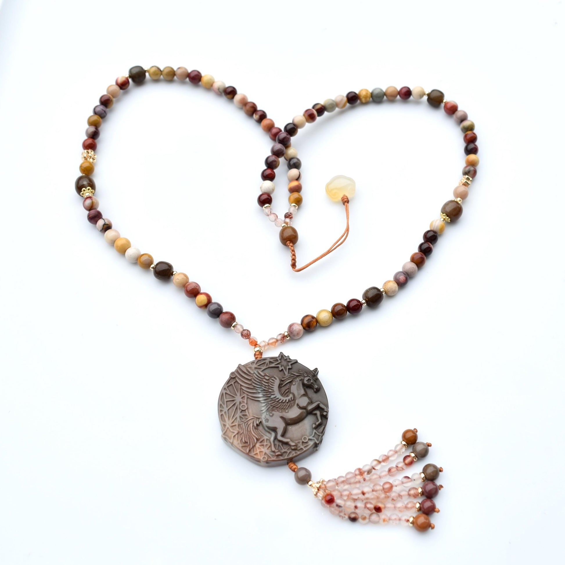 Jasper Unicorn Pendant Tassel Necklace - Colorful Agate Necklace