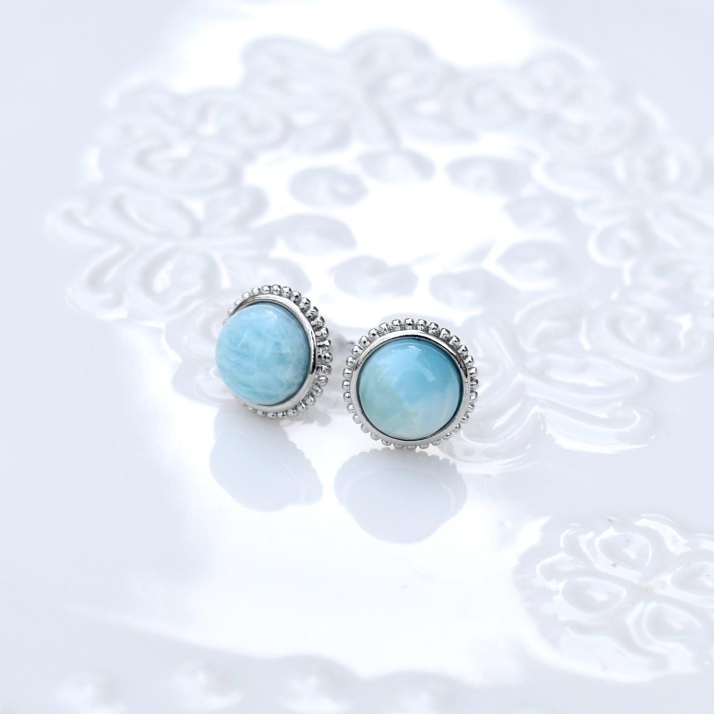 This pair of cute earrings features circle-shaped larimar cabochon. These earrings are perfect matching Chinese style clothes and also wonderful gifts for her on holiday! You can wear them daily or on special occasions!