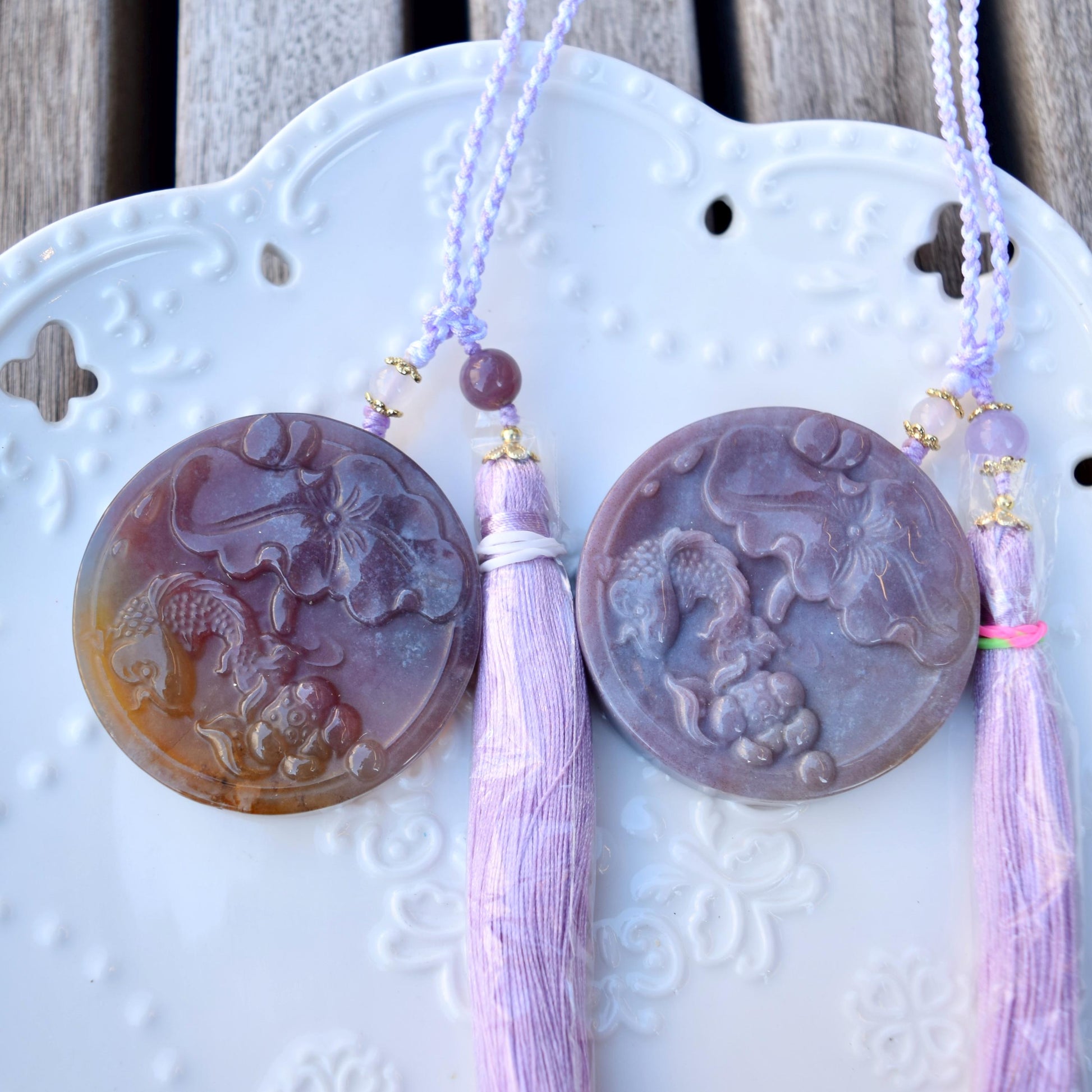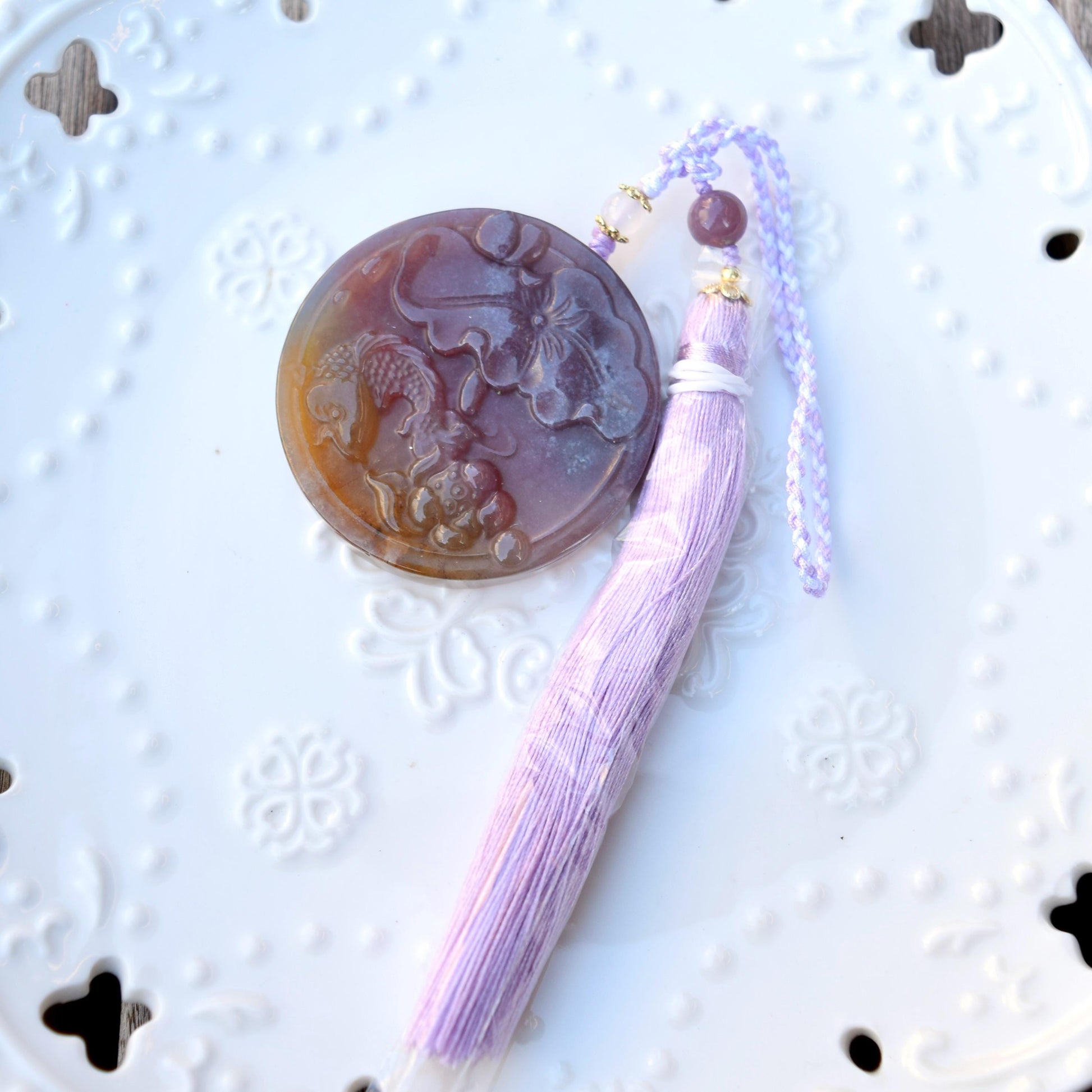 Lotus Fish Agate Pendant Tassel Accessory - Chinese Bag/Car/Waist Hanging Accessory