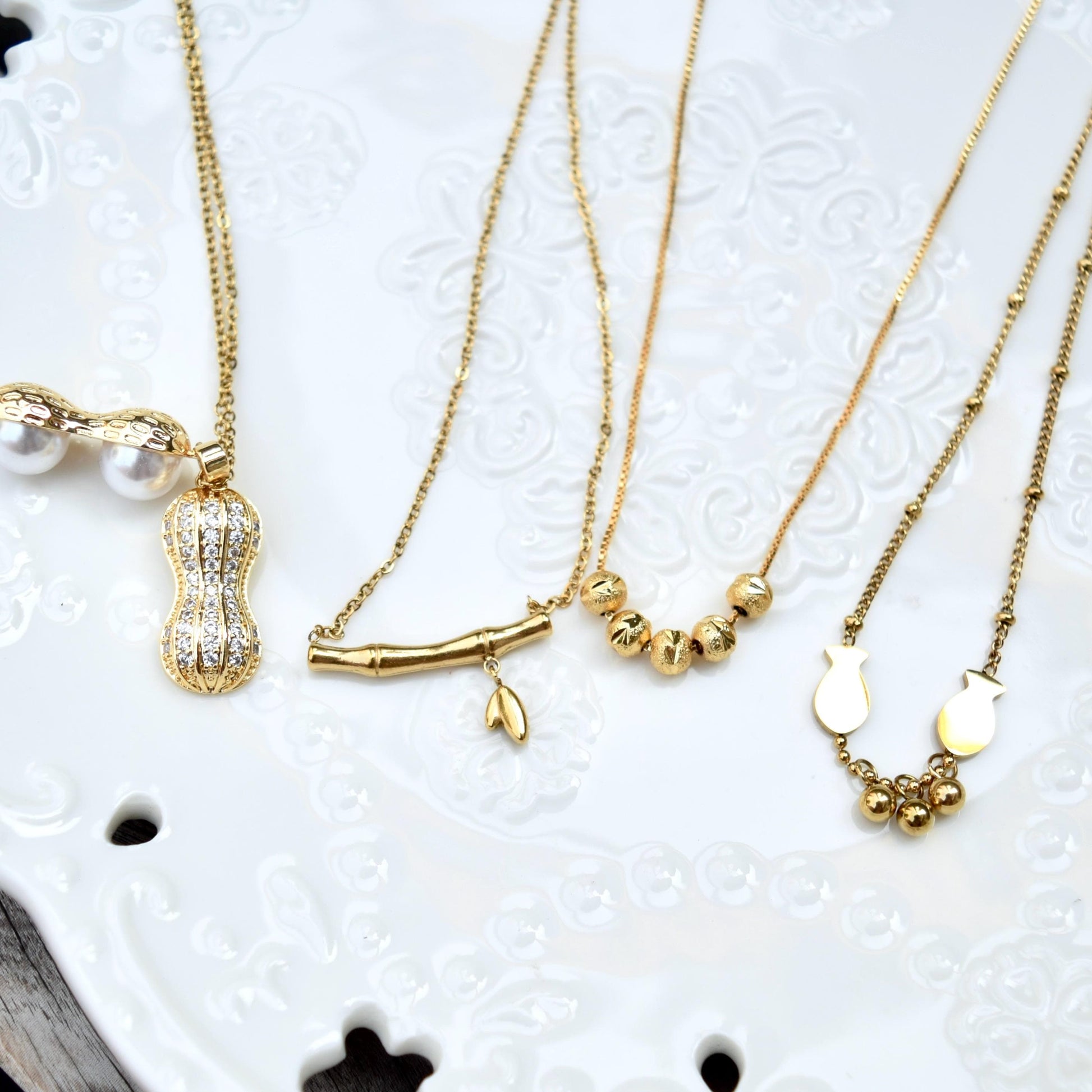 This traditional necklace collection features Chinese-themed charms, including pearl pea, bamboo, fortune beads and lucky fish. All of them will express sweet blessings to people in a whole year!
