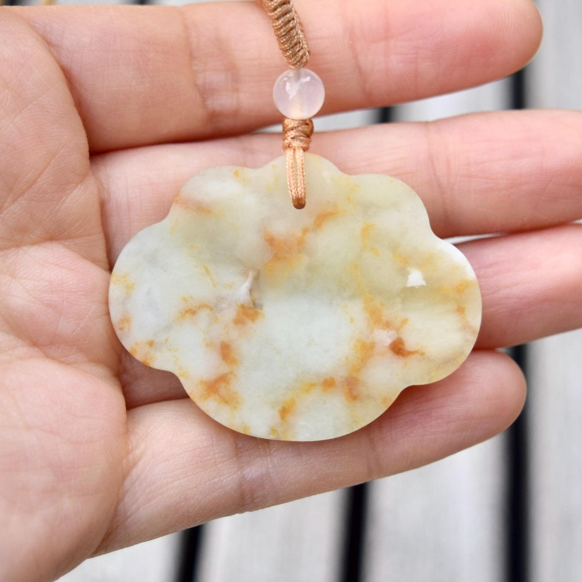 Peony Pendant Braided Rope Necklace - Yellow Serpentine Jade