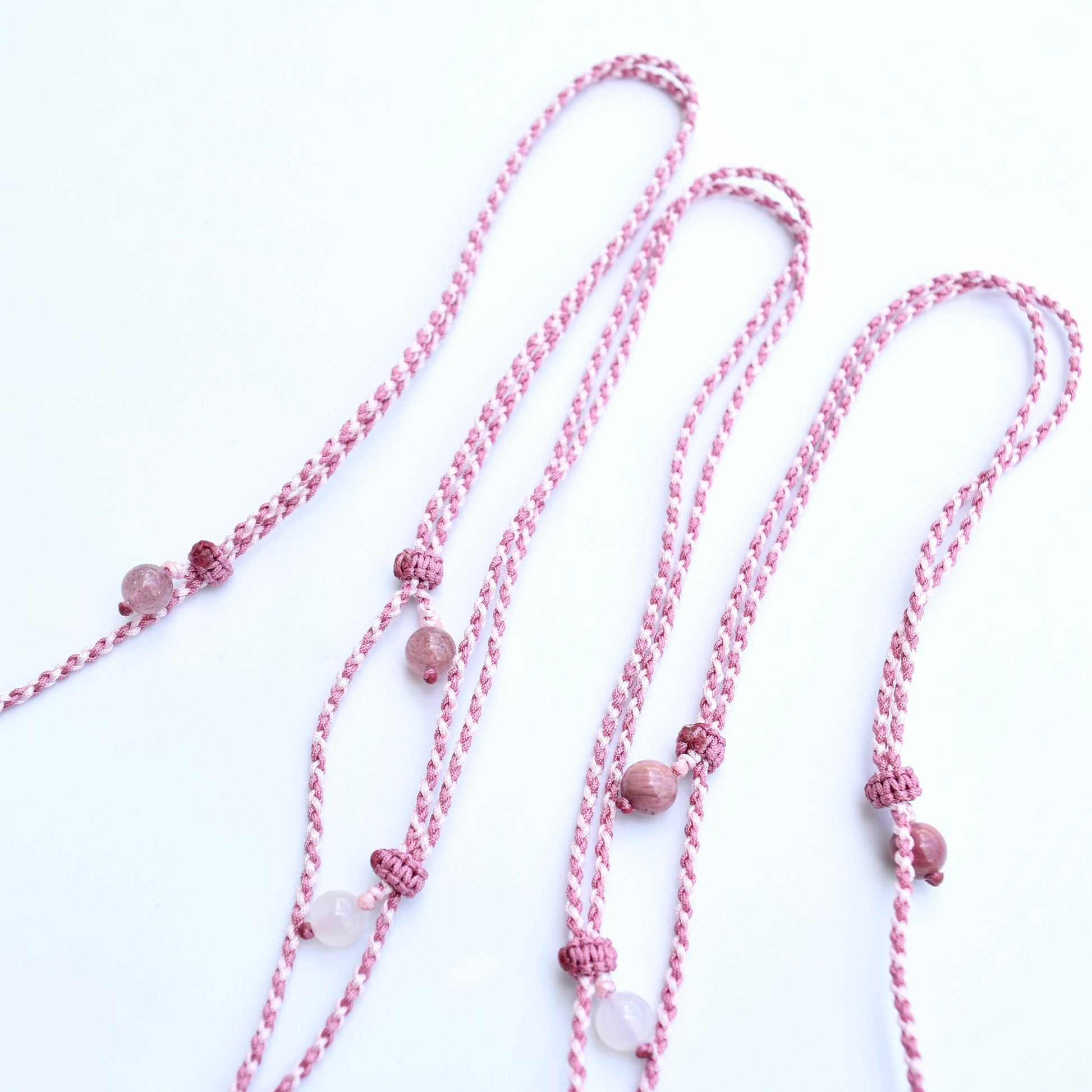 Pink Rose Pendant Rope Necklace - Rhodonite