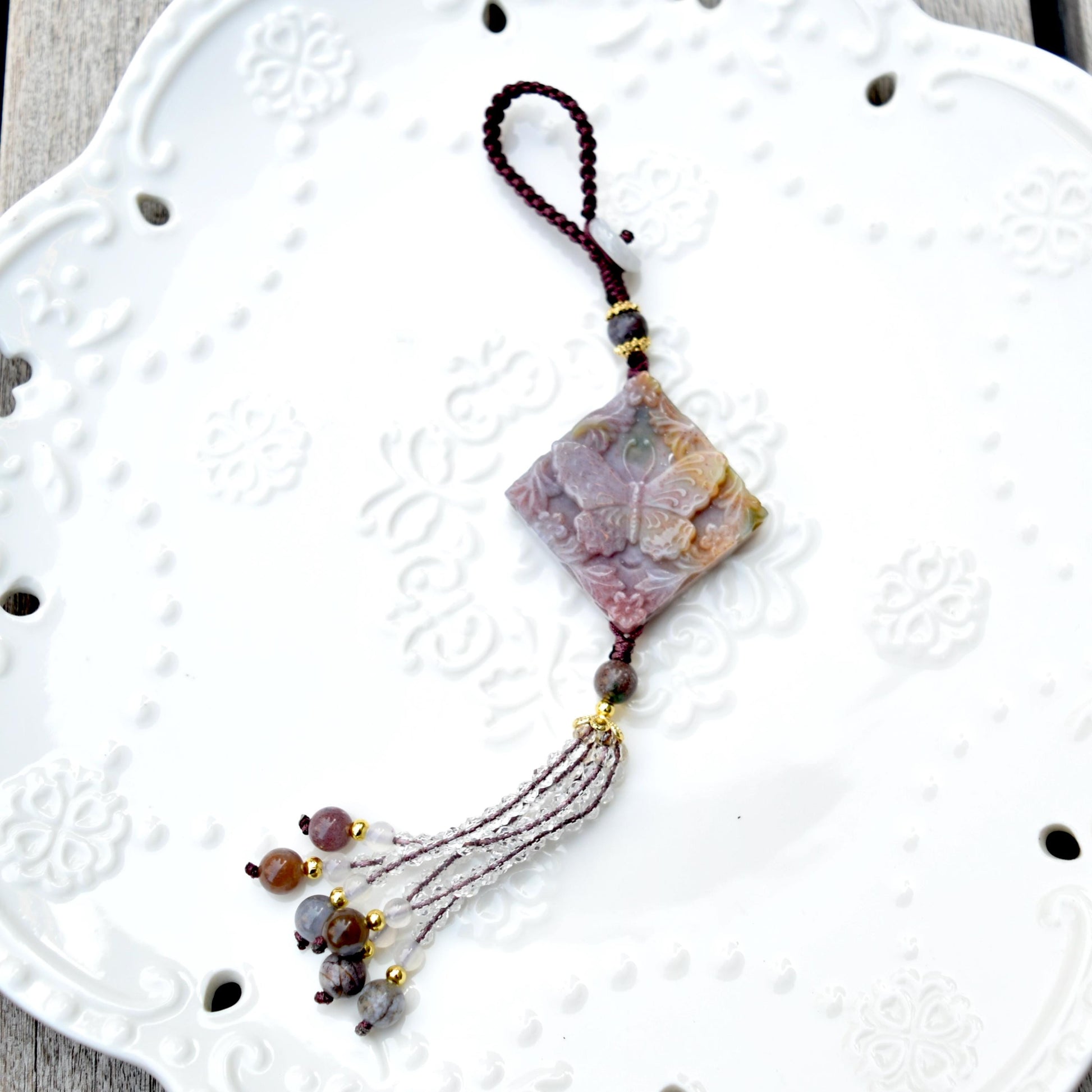 Purple Butterfly Keychain Bag Charm - Ocean Jasper - 6 Styles