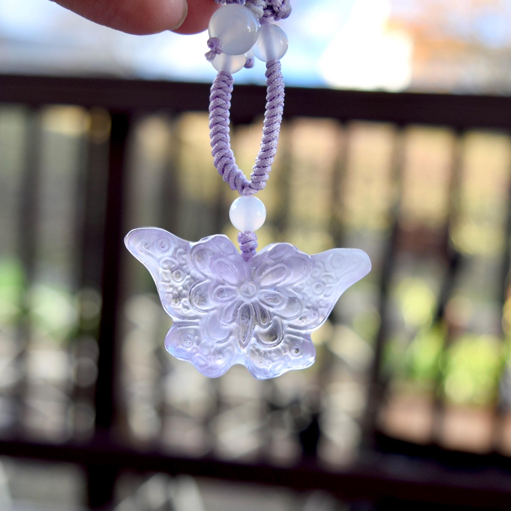 This collection of featured pendants carved as flora butterfly pendant, made of natural amethyst. They will bring you elegant glow and feminine beauty.