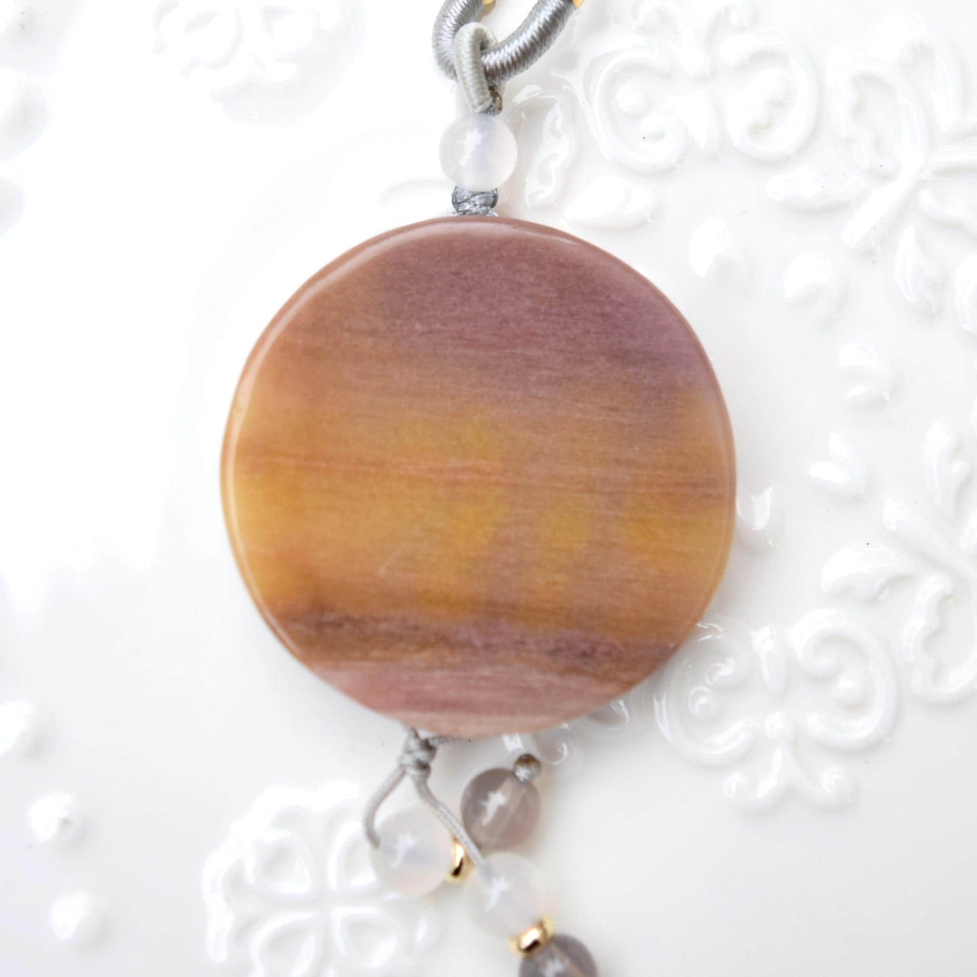 The paired necklace is adjustable with yellow cords. The overall design embodies implicit and plain style. So this agate cord necklace is a wonderful jewelry to wear every day.