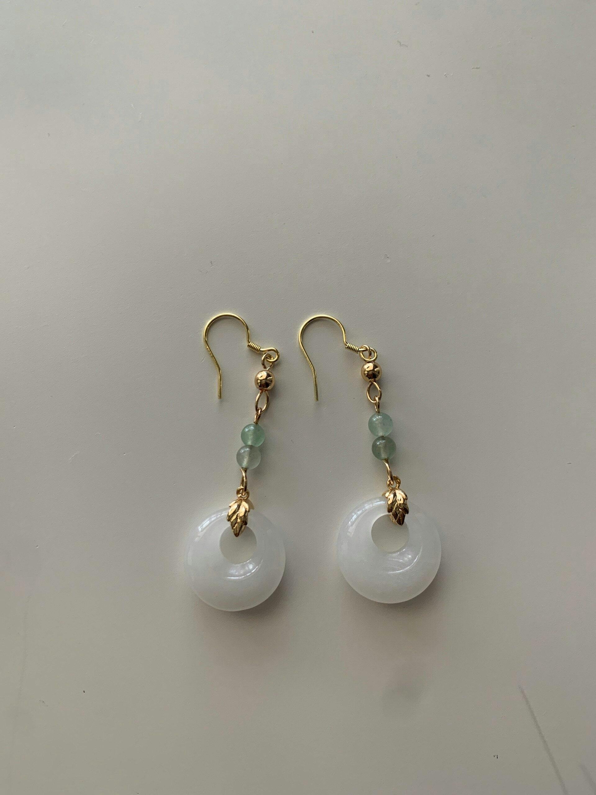 These unique earrings are inspired by the traditional Chinese symbolic meanings of a Jade Circle. Made with jade gemstones, these earrings represent peace, luck, safety, and auspiciousness.