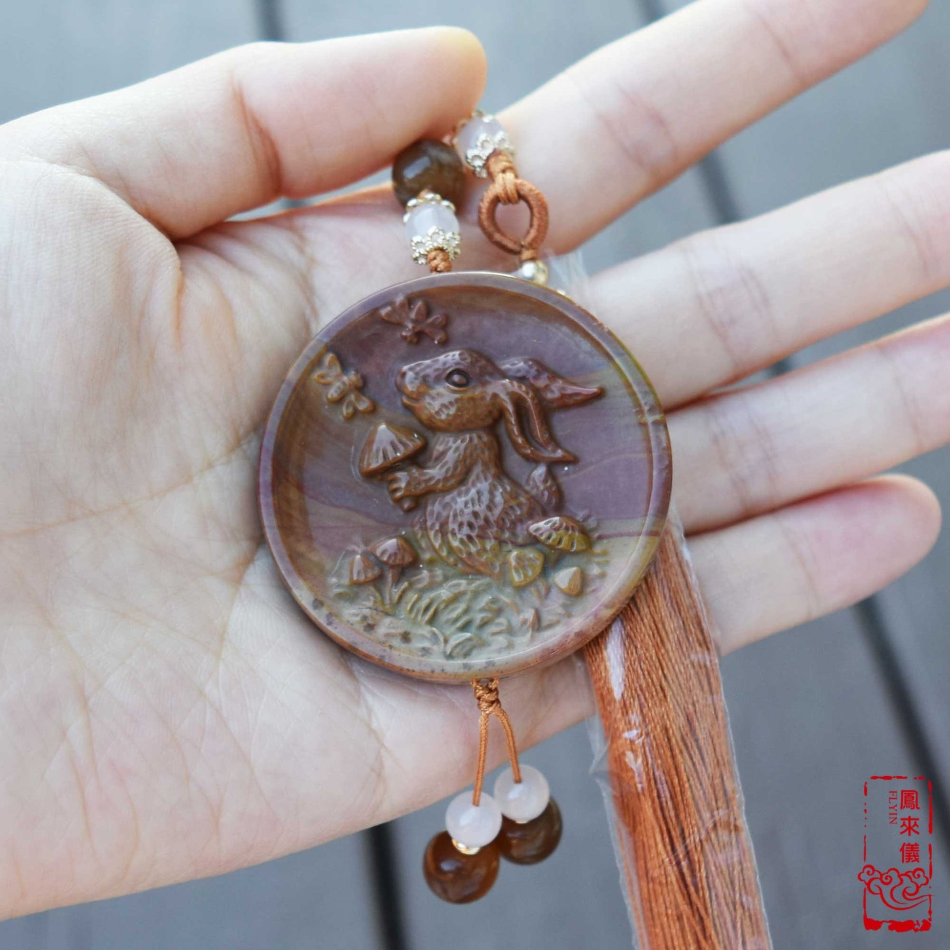 Rabbit Pattern Agate Pendant Tassel Accessory - Chinese Bag/Car/Waist Hanging Accessory - Moon Festival