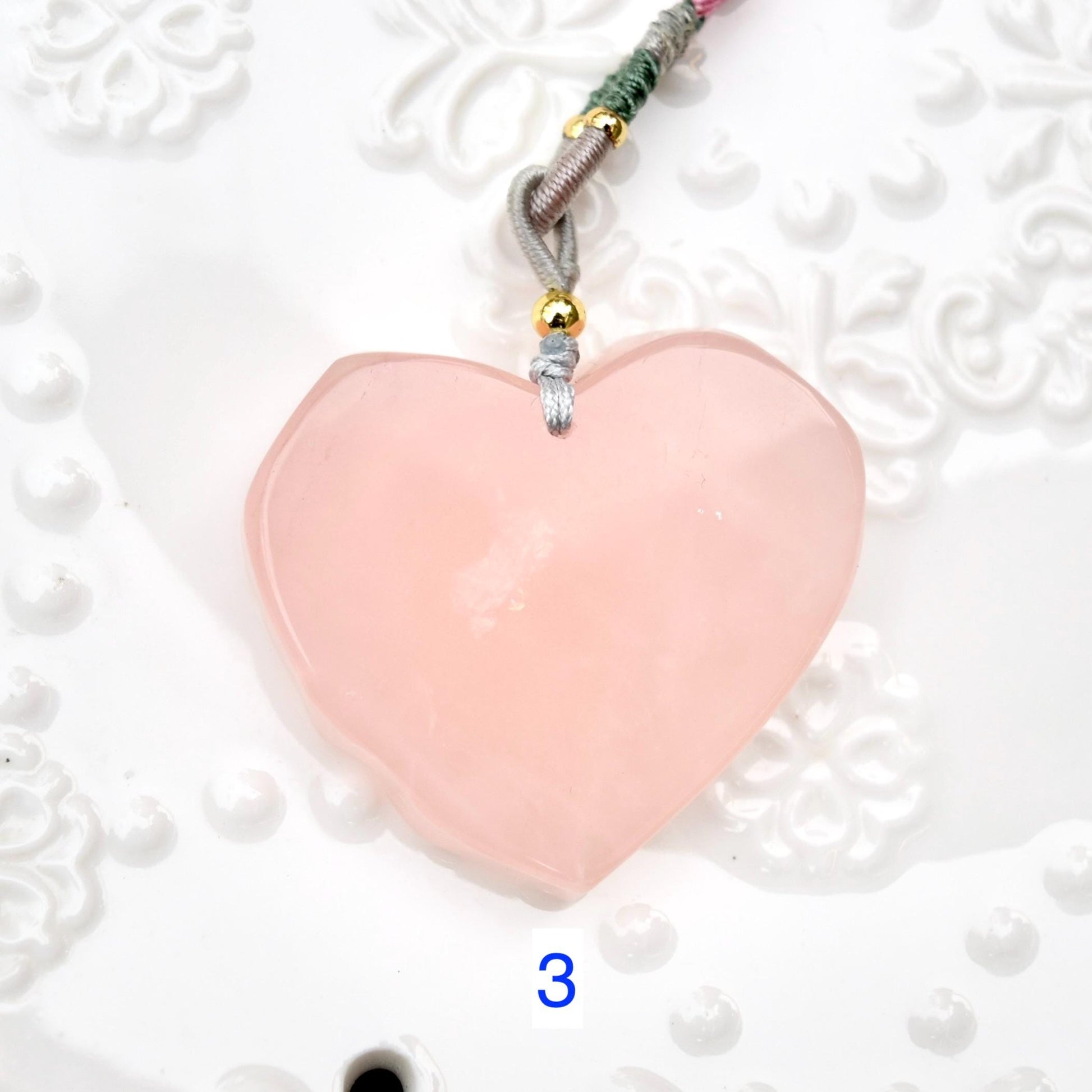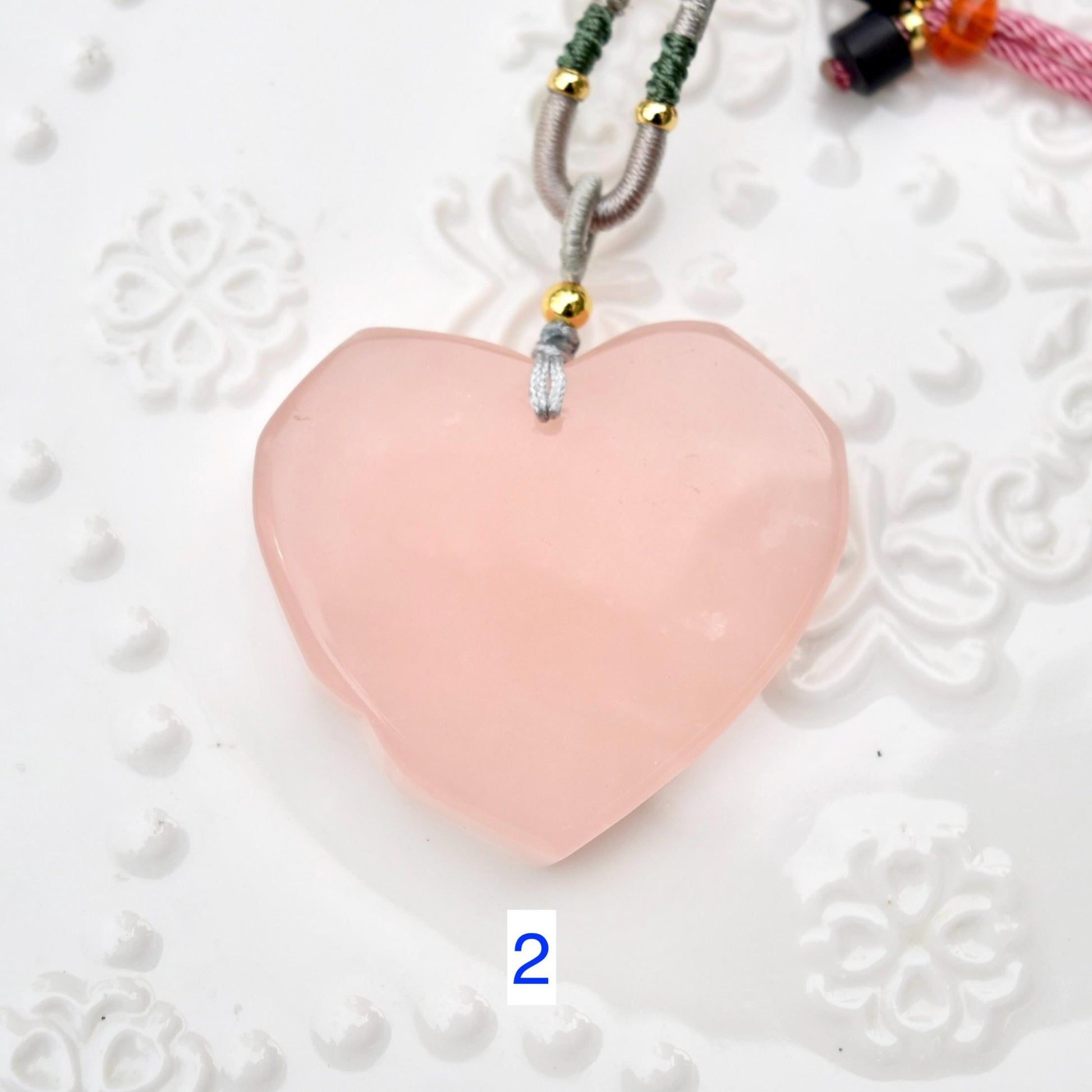 Rose Quartz Heart Rose Pendant Necklace - Jade Cord