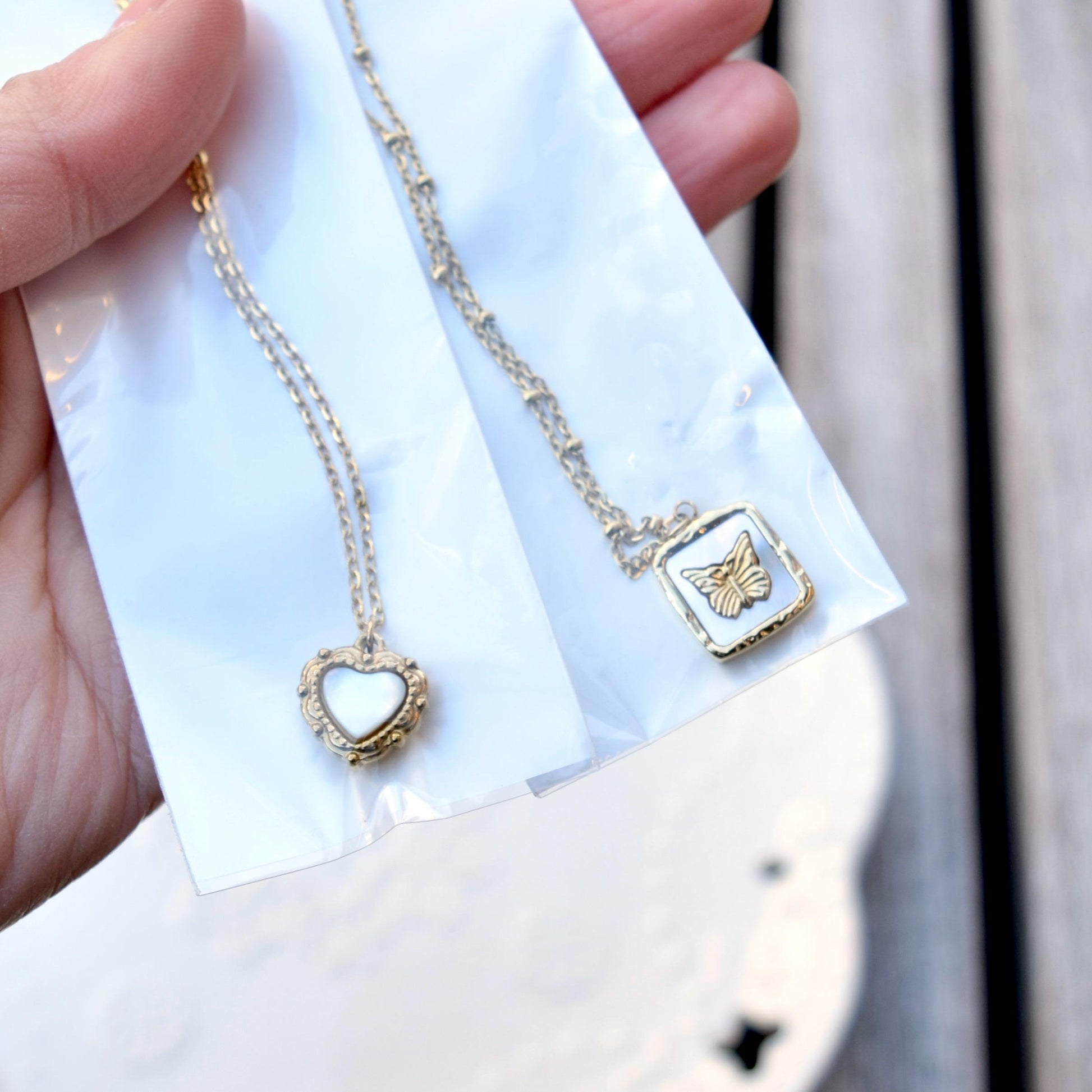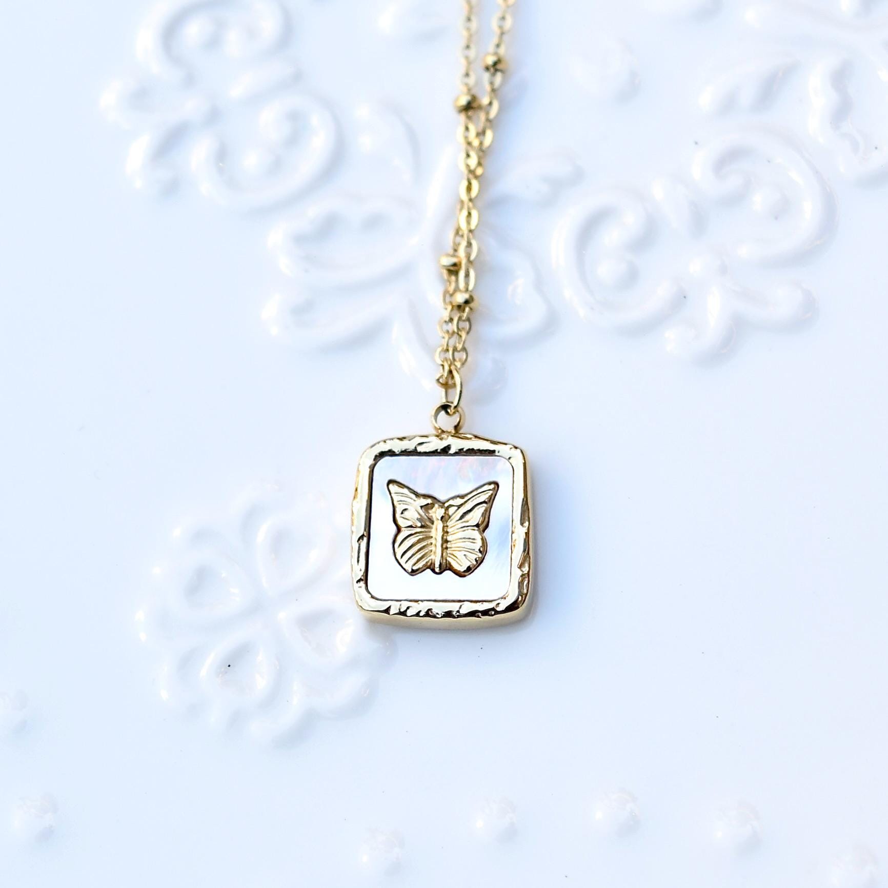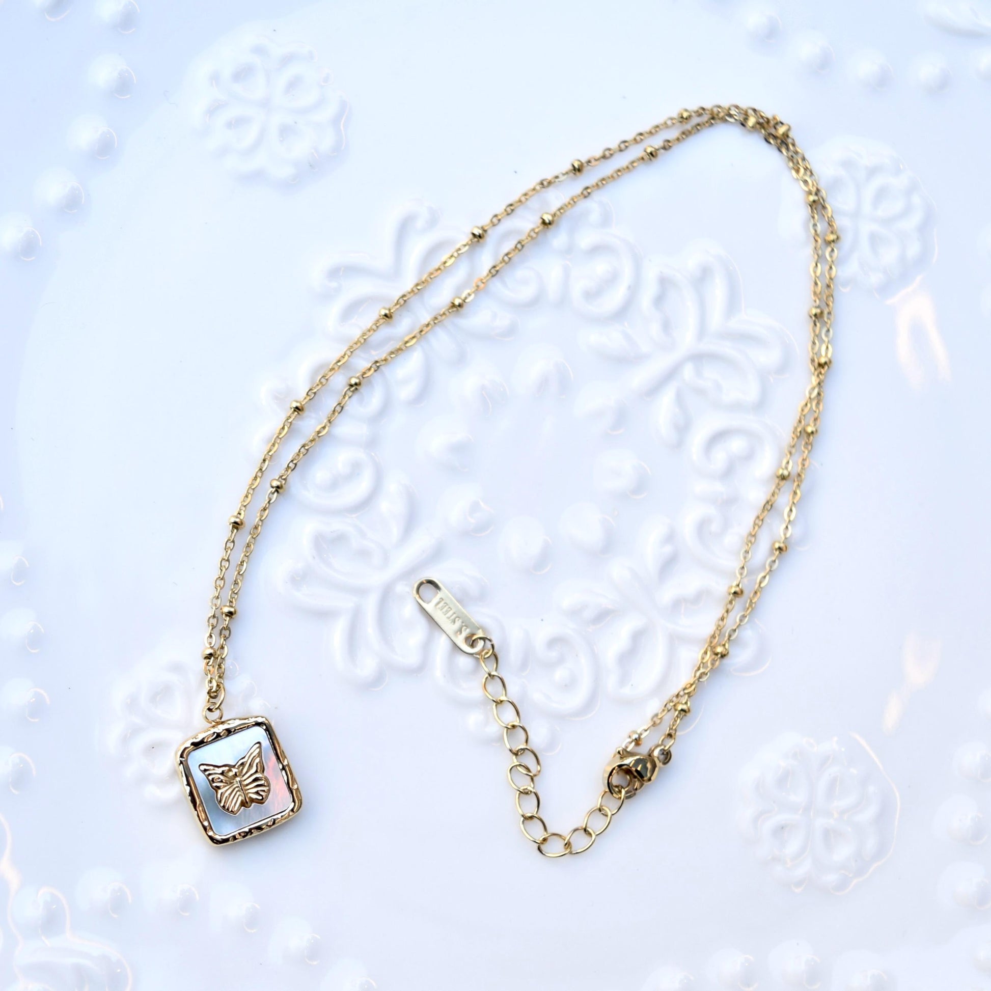 Shell Butterfly Heart Charm Golden Necklace - Vintage Style