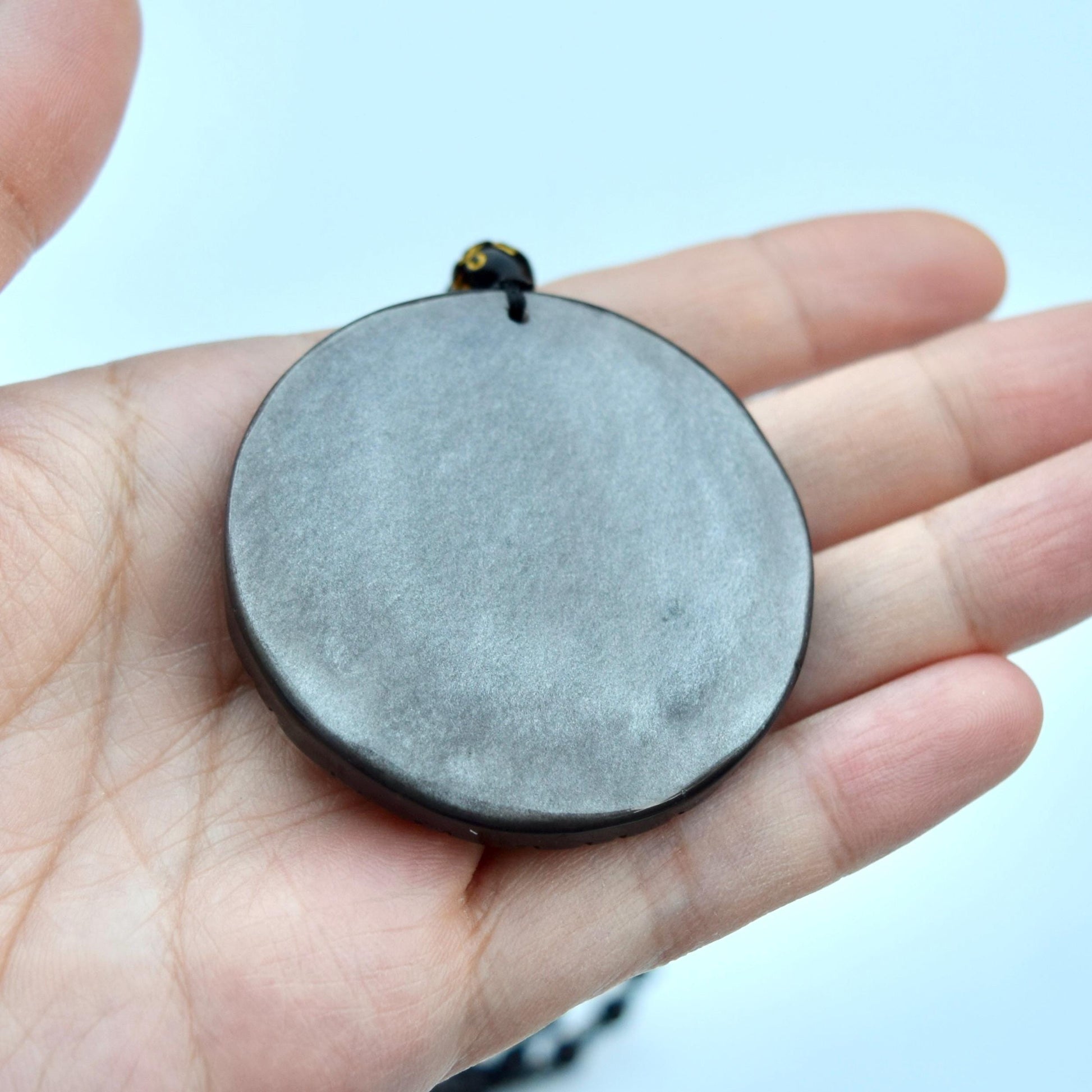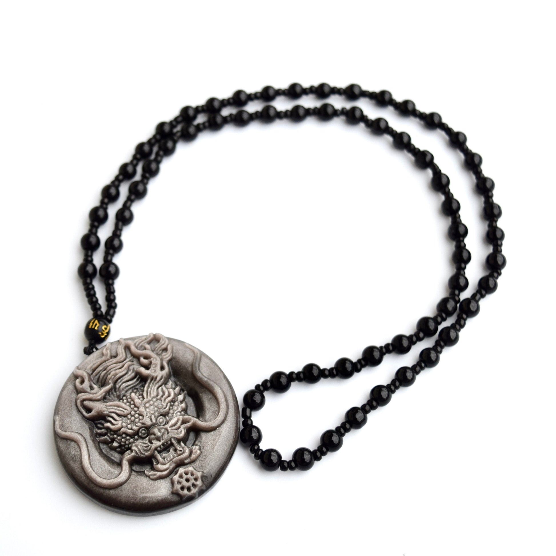 Silver Obsidian Dragon Pendant Necklace - Chinese Zodiac Beaded Necklace