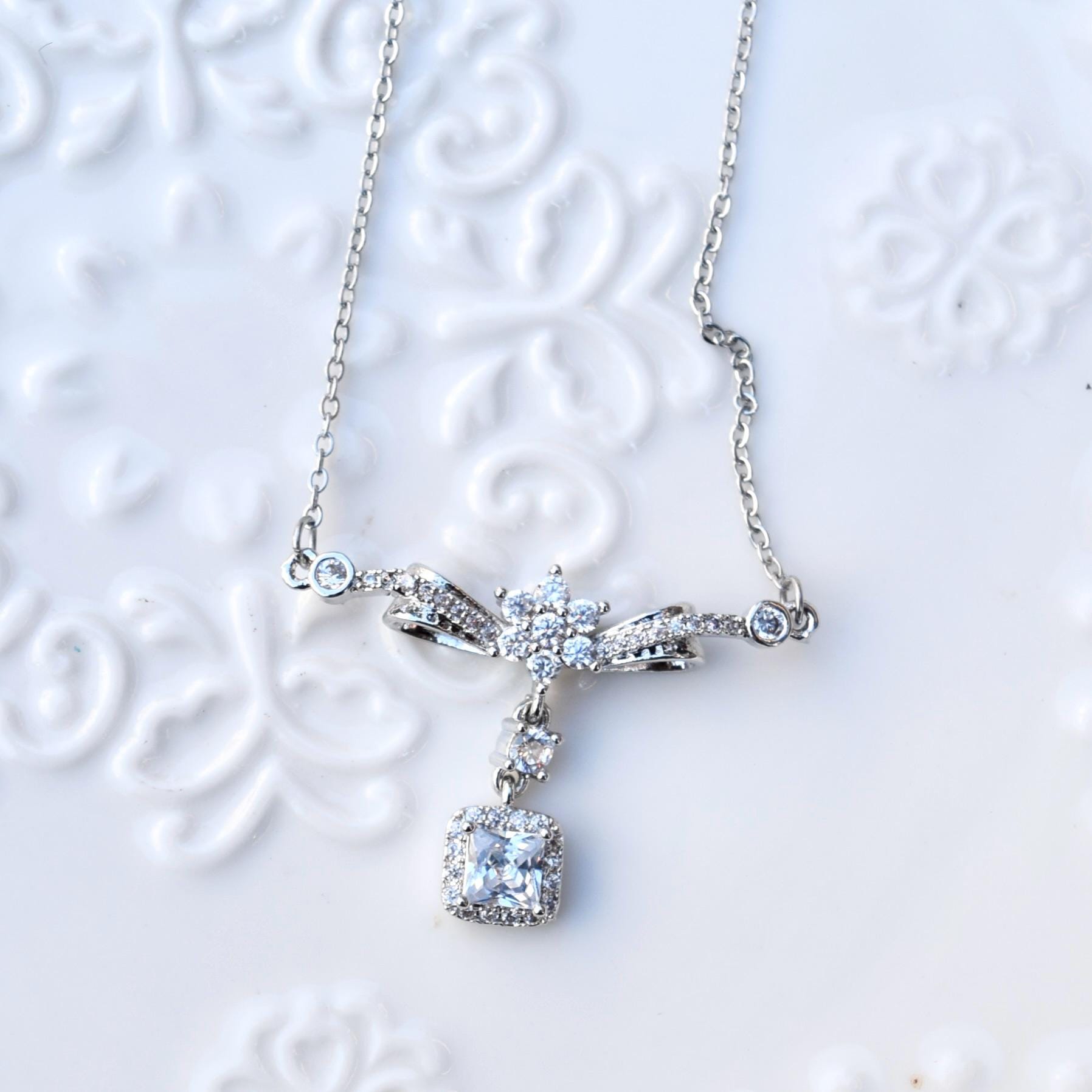 This cute necklace collection features clear crystals, made of CZ diamonds and silver plated findings. The paired chain is made of gold plated stainless steel with wonderful color retention. It's perfect matching other silver necklaces as layered jewelry and you can wear this necklace daily or on special occasions! Also making a wonderful gifts for her on holiday!