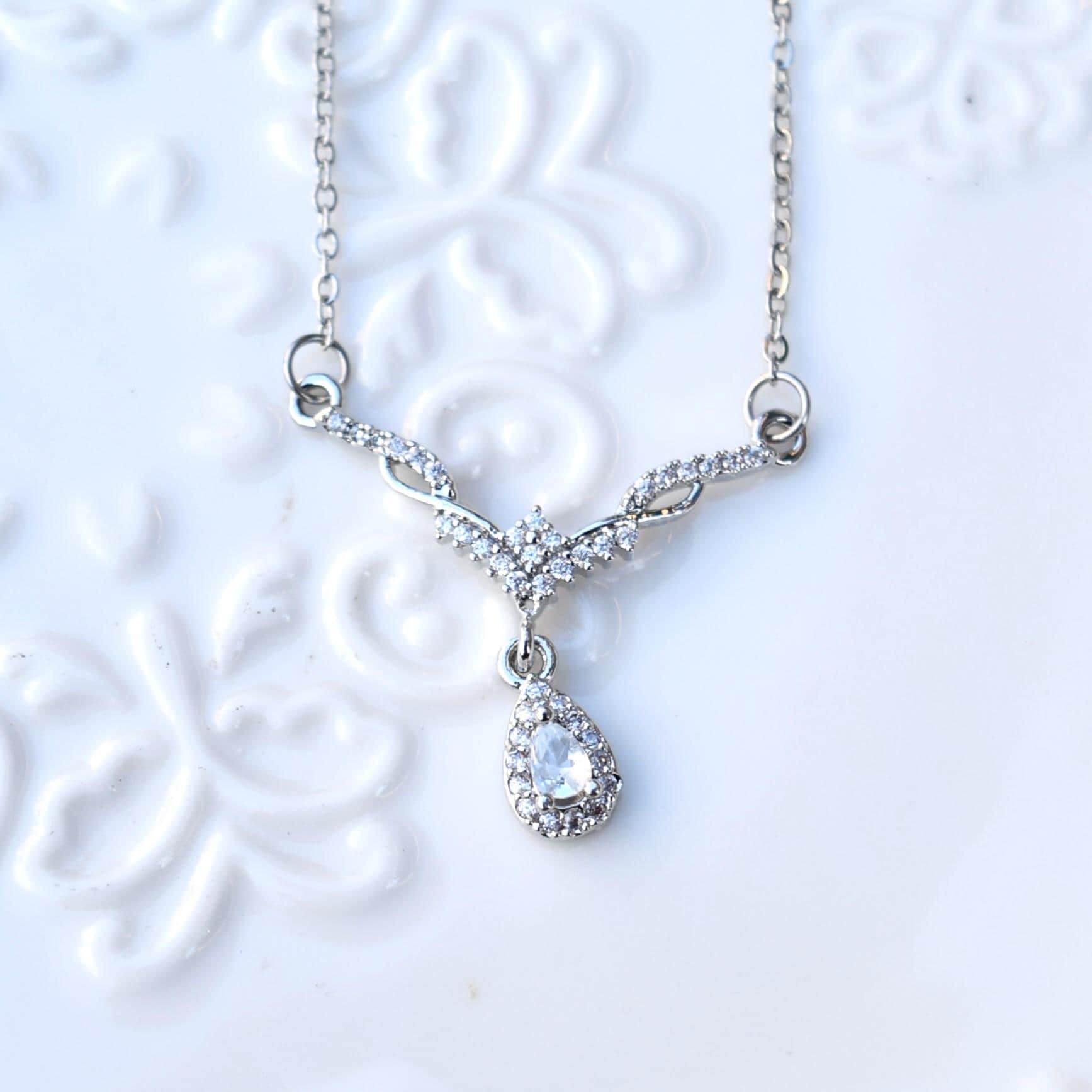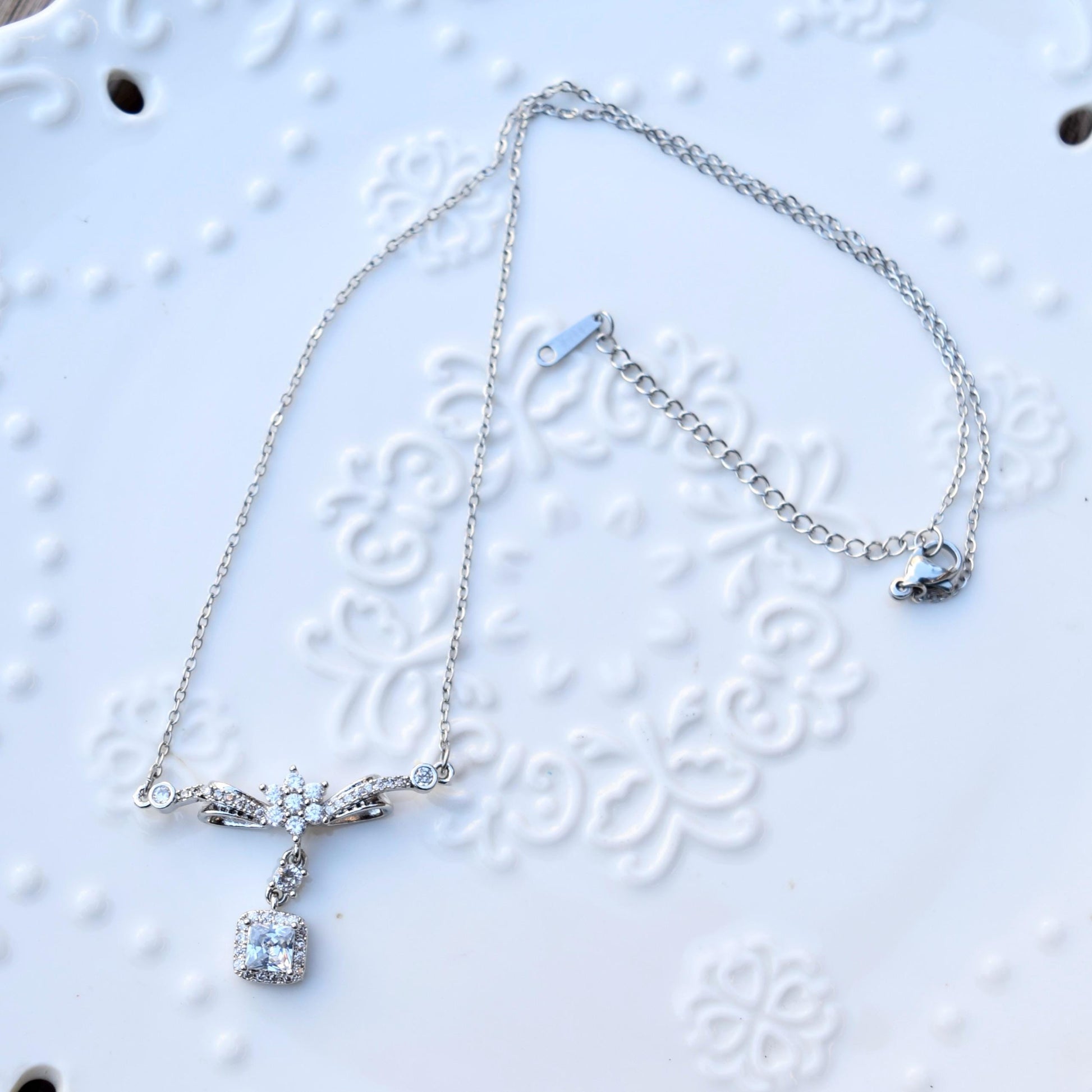 Silver Princess Crystal Pendant Necklace - Stainless Steel Necklace