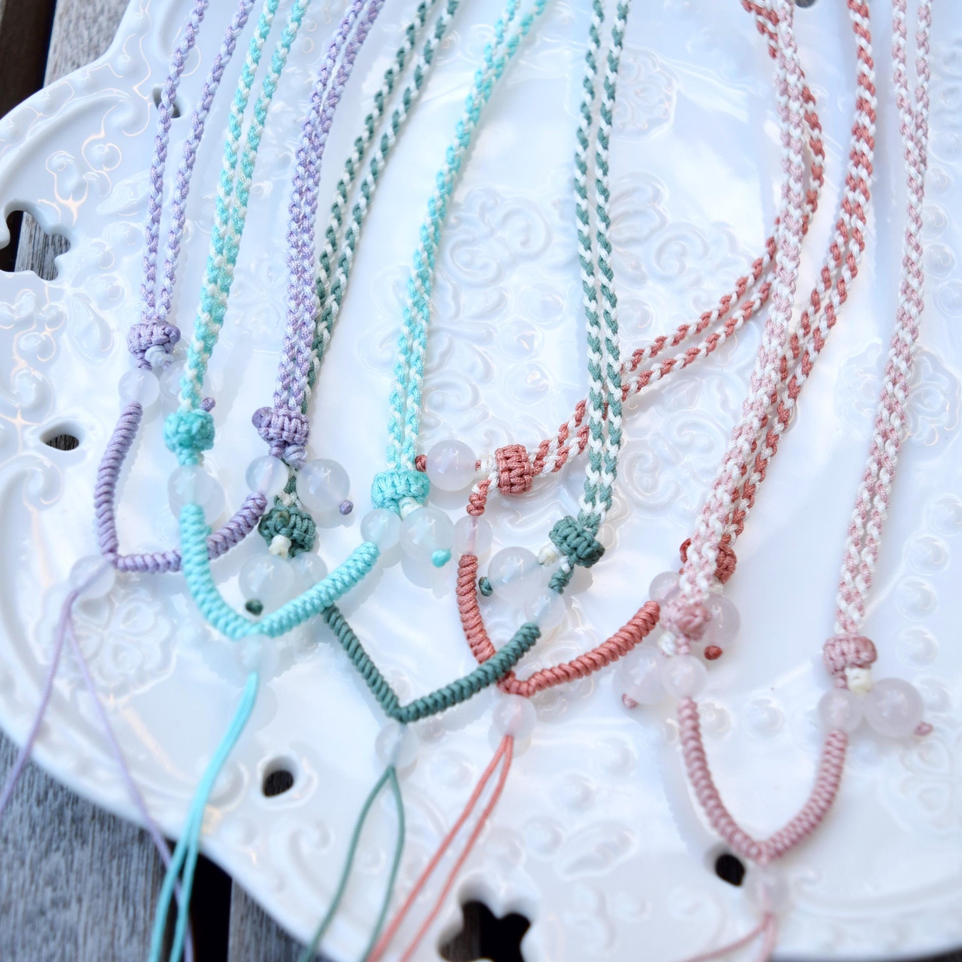 This collection of rope necklace is braided with high-quality cords in one main color and white. The colorful tone can match most gemstone pendants. The length is adjustable so it fit most people, both adult and kid. The overall design embodies implicit and plain style. So this jade braided cord necklace is a wonderful jewelry to wear every day.
