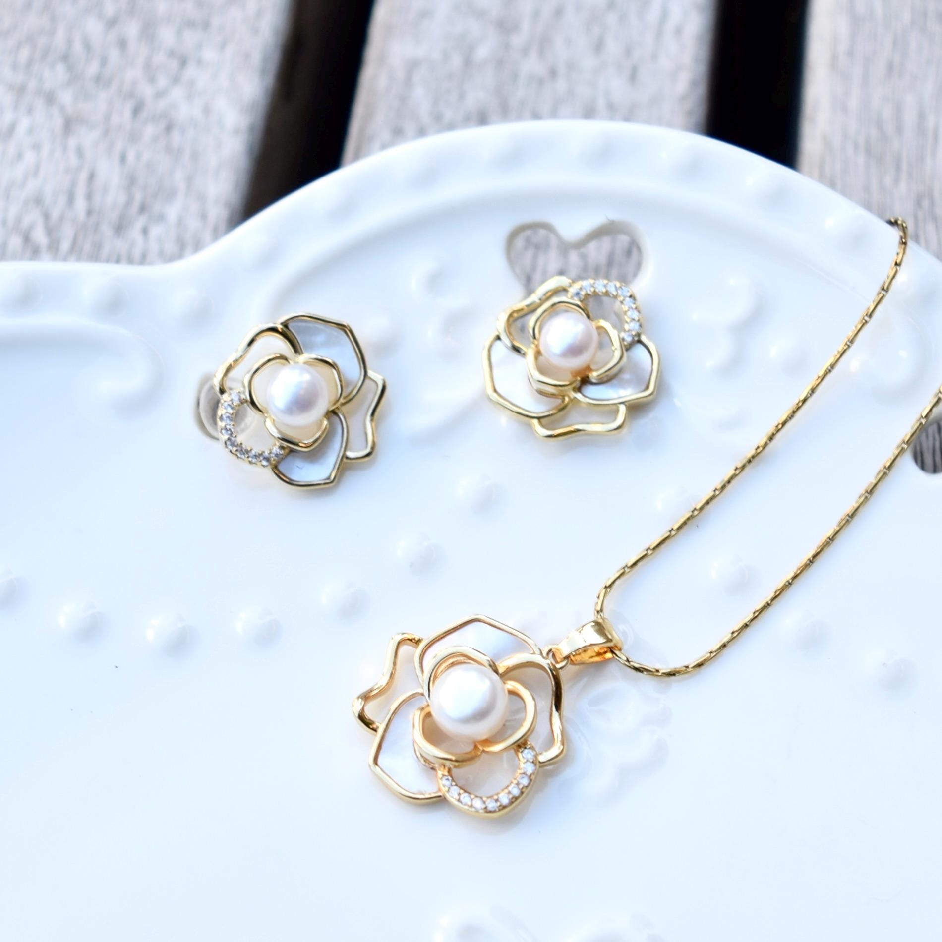 Classic and delicate charm in camellia shape, made of natural shell and pearl. The paired chain is made of gold plated stainless steel with wonderful color retention. It's perfect matching other gold necklaces as layered jewelry and you can wear this necklace daily or on special occasions! Also making a wonderful gifts for her on holiday!
